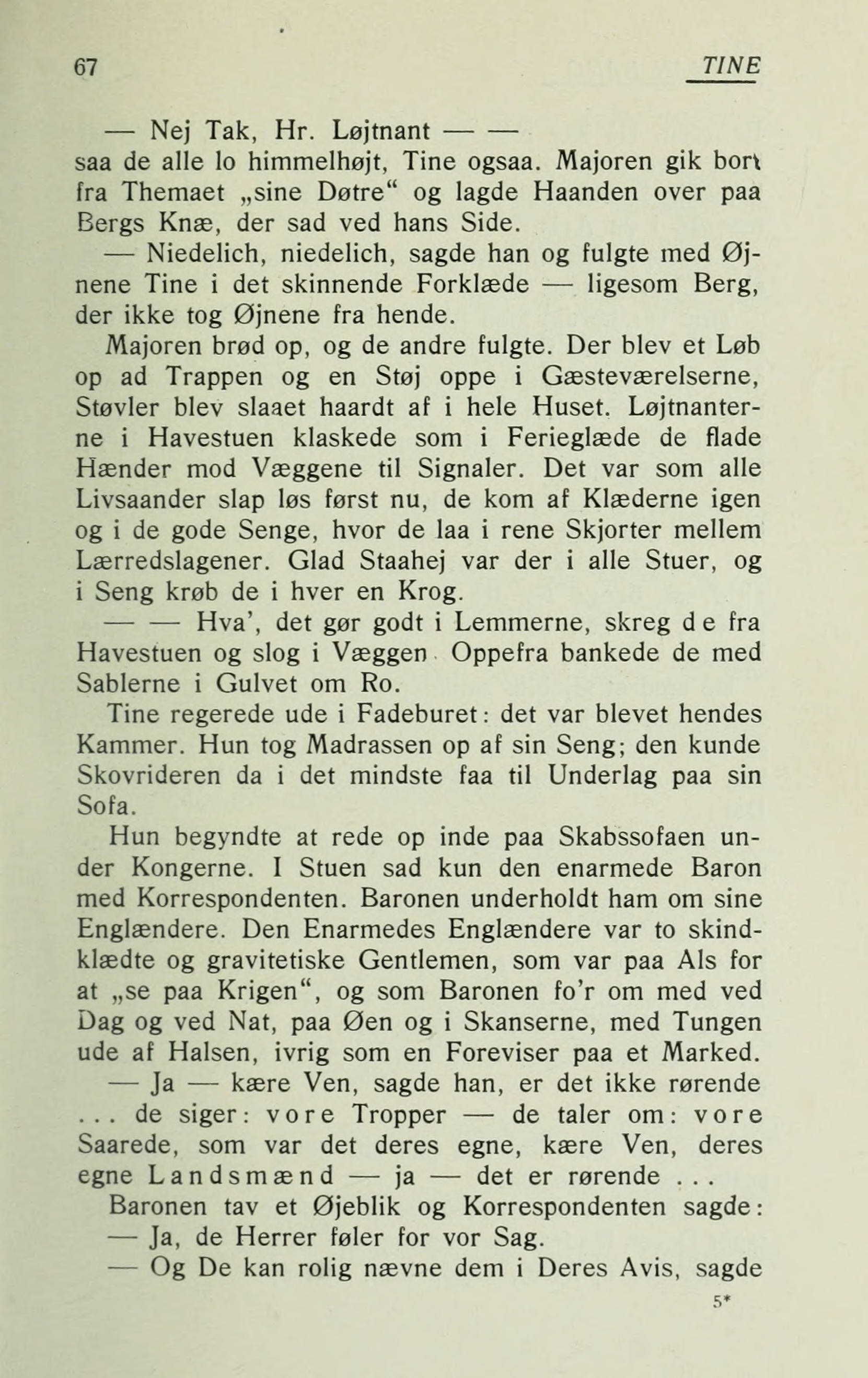 at „se paa Krigen", og som Baronen fo’r om med ved