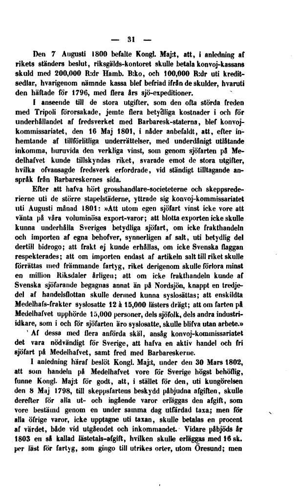 uti Augusti månad 1801: »Att utom egen sjöfart vinst icke vore att