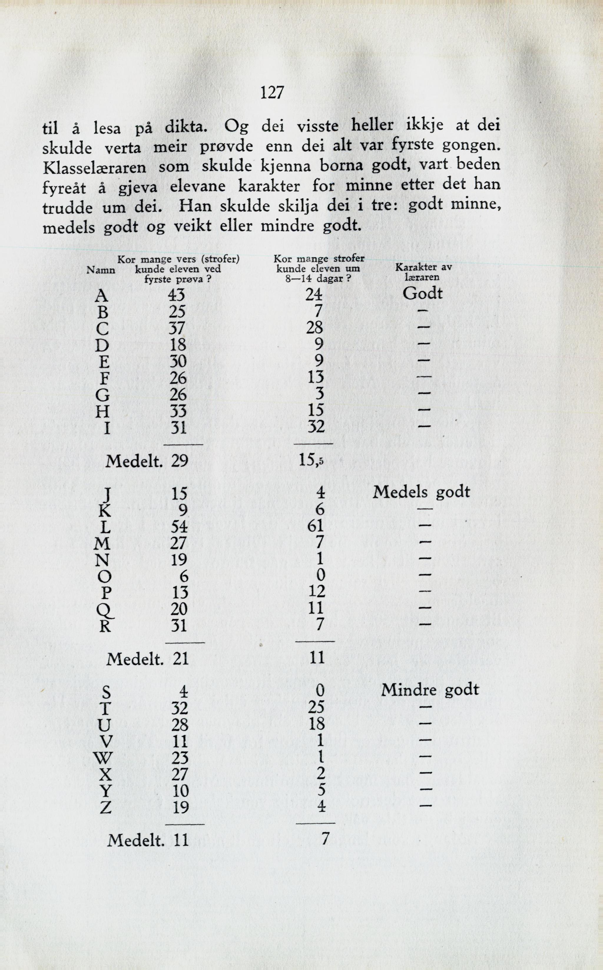 Namn Kor mange vers (strofer) kunde eleven ved fyrste prøva ? Kor mange strofer kunde eleven um 8—14 dagar ? Karakter av læraren