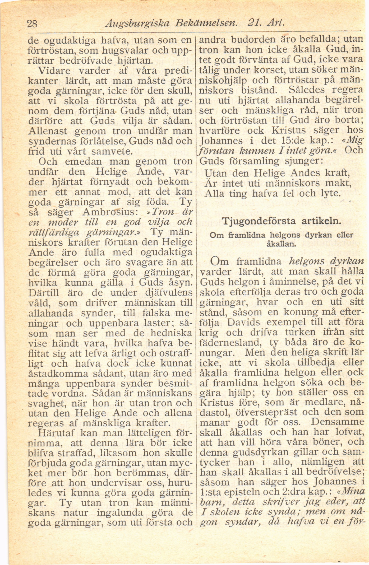 Full resolution (JPEG) - On this page / på denna sida - Augsburgiska Bekännelsen - 20:de artikeln. Om rättfärdigheten och goda gärningar - 21:sta artikeln. Om helgons dyrkan