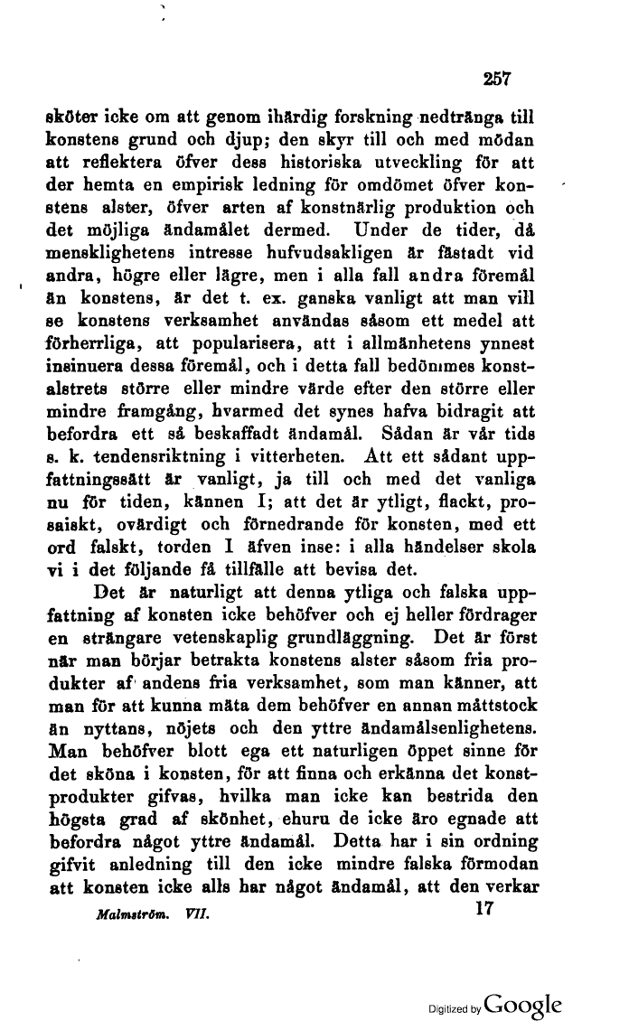 uppfattning af konsten icke behöfver och ej heller fördrager