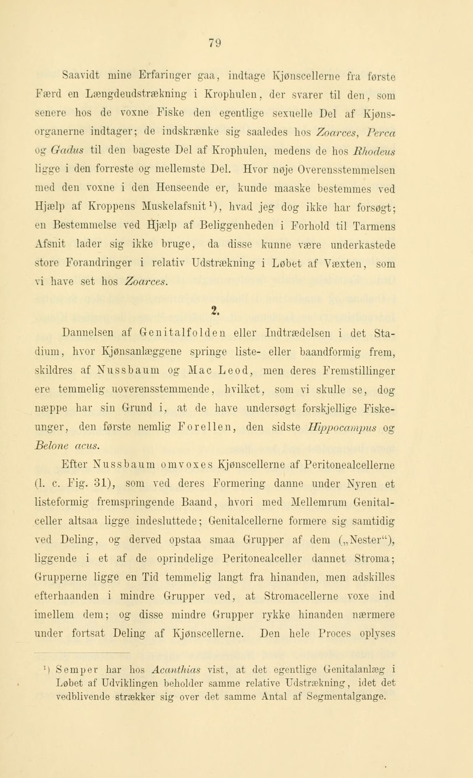 Full resolution (JPEG) - On this page / på denna sida - II. Almindelig Fremstilling af Genitaludviklingen hos Benfiskene - 1. Det første Anlæg - 2. Dannelsen af Genitalfolden