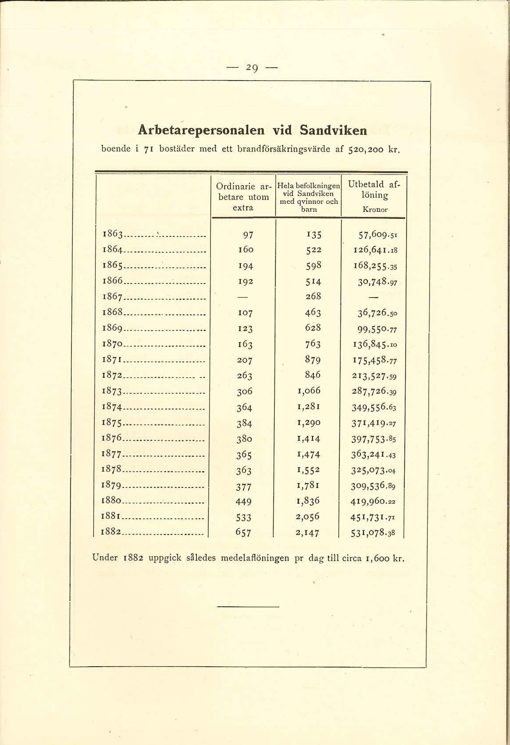 Ordinarie arbetare utom extra | Hela befolkningen vid Sandviken med qvinnor och barn | Utbetald aflöning Kronor | |