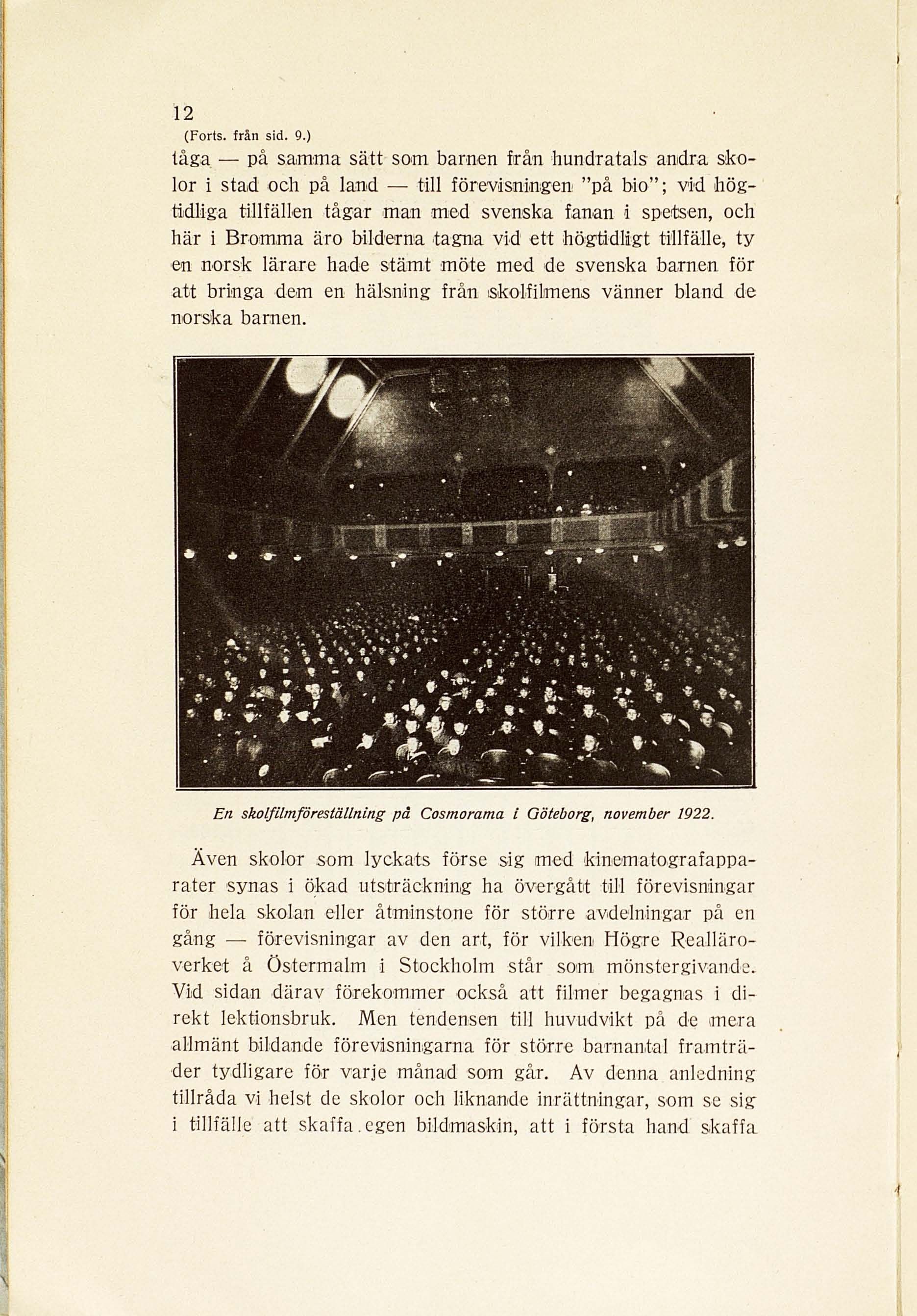 En skolfilmföreställning på Cosmorama i Oöteborg, november 1922.