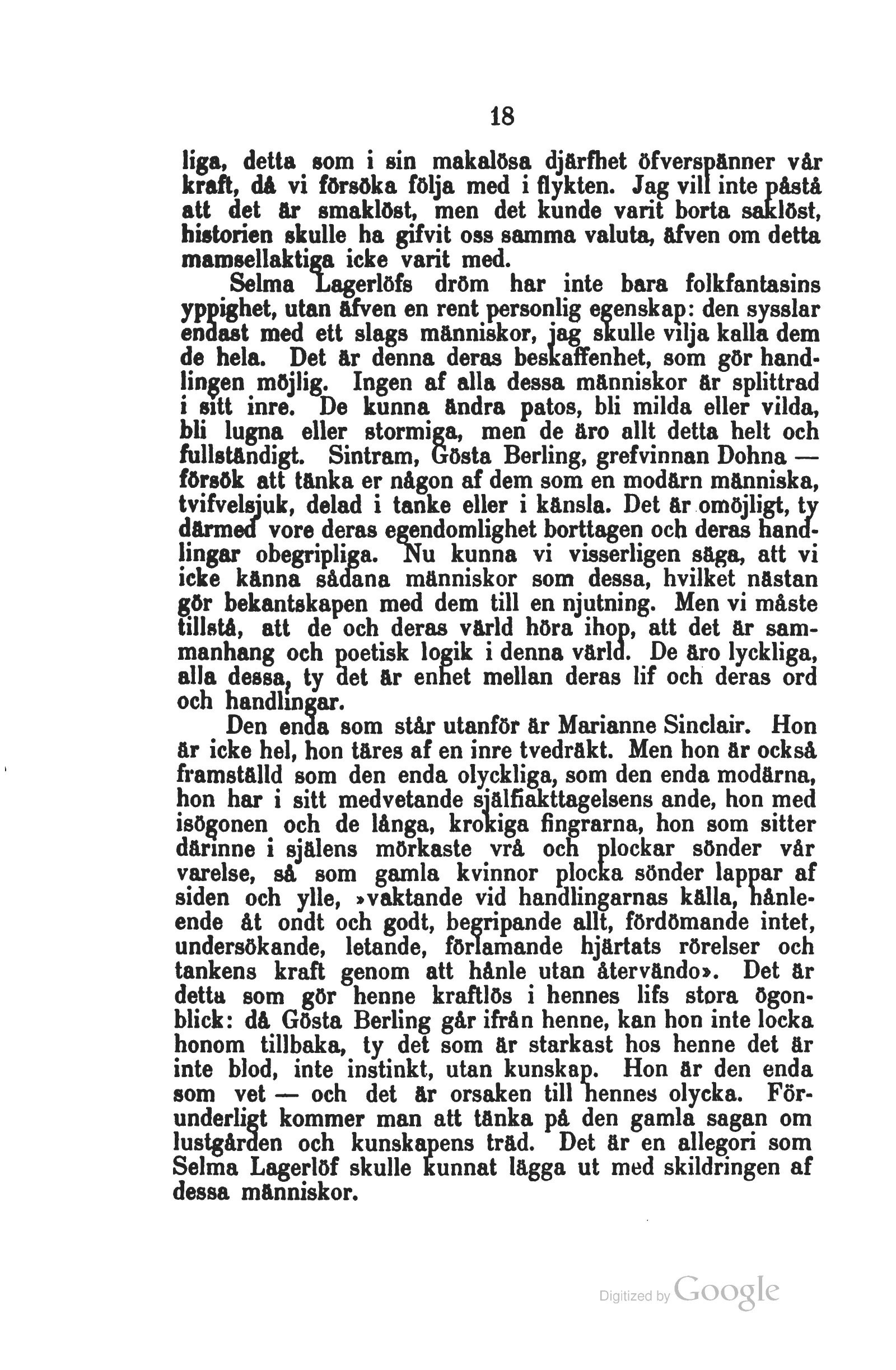 fullständigt. Sintram, Gösta Berling, grefvinnan Dohna —