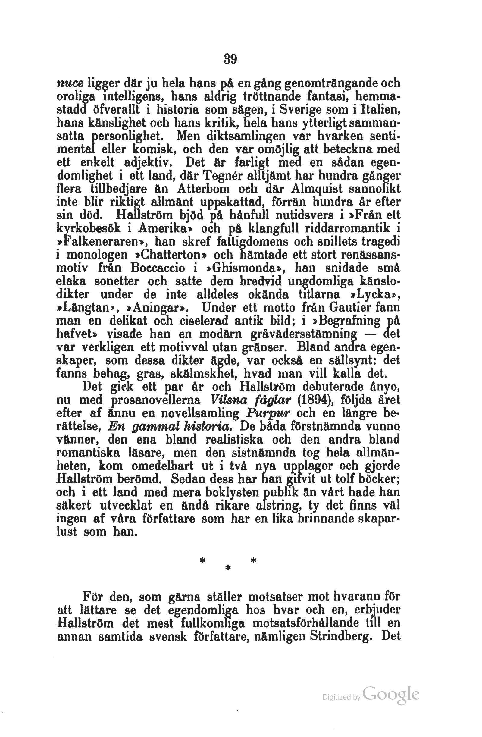 Hallström berömd. Sedan dess har han gifvit ut tolf böcker;