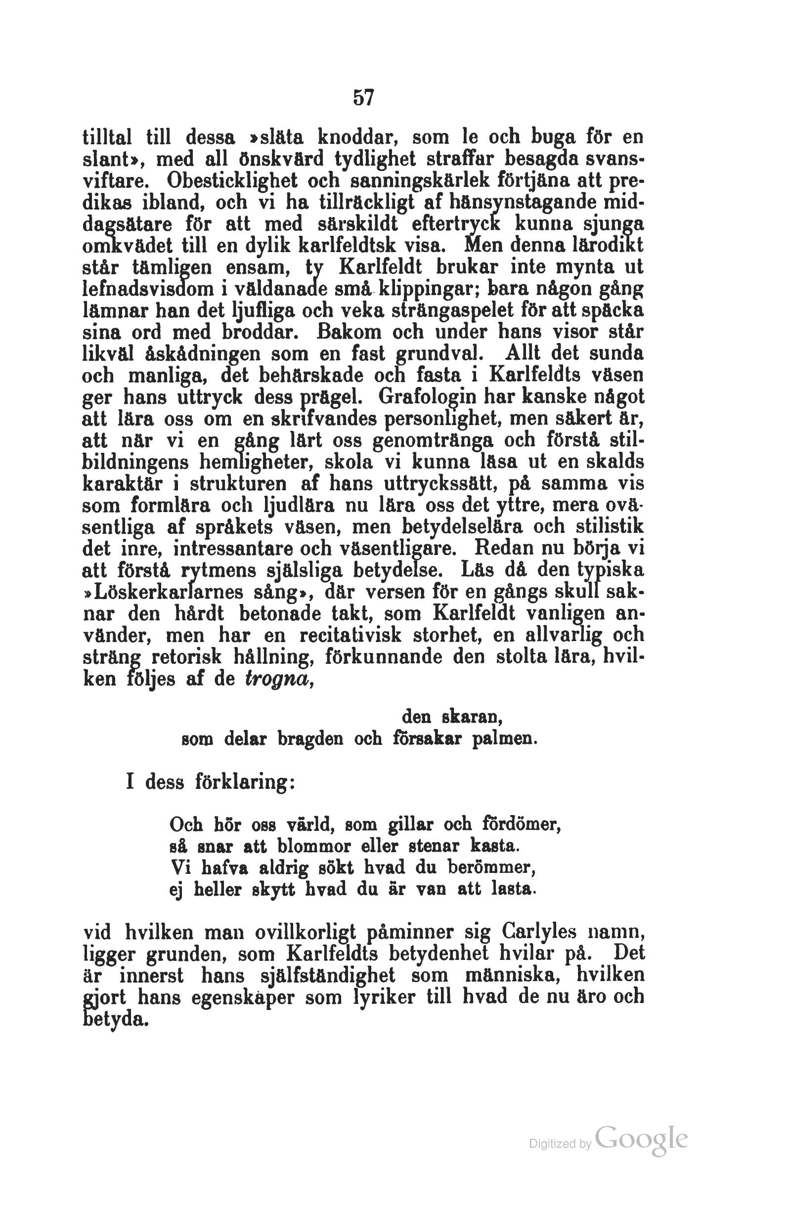 står tämligen ensam, ty Karlfeldt brukar inte mynta ut