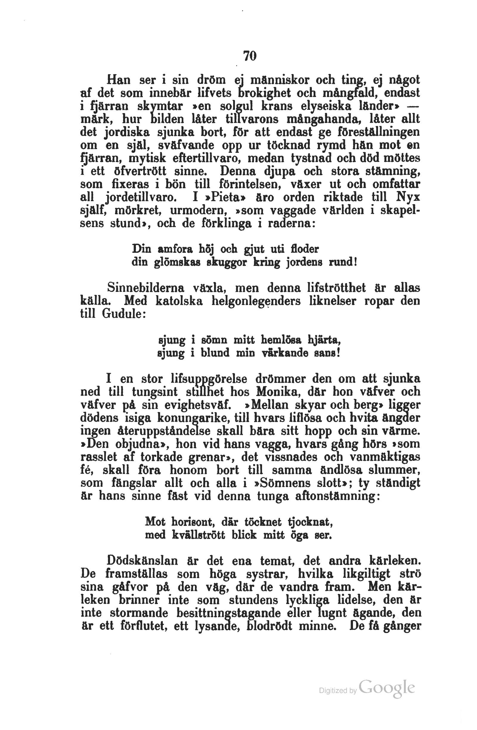 all jordetillvaro. I »Pieta» äro orden riktade till Nyx