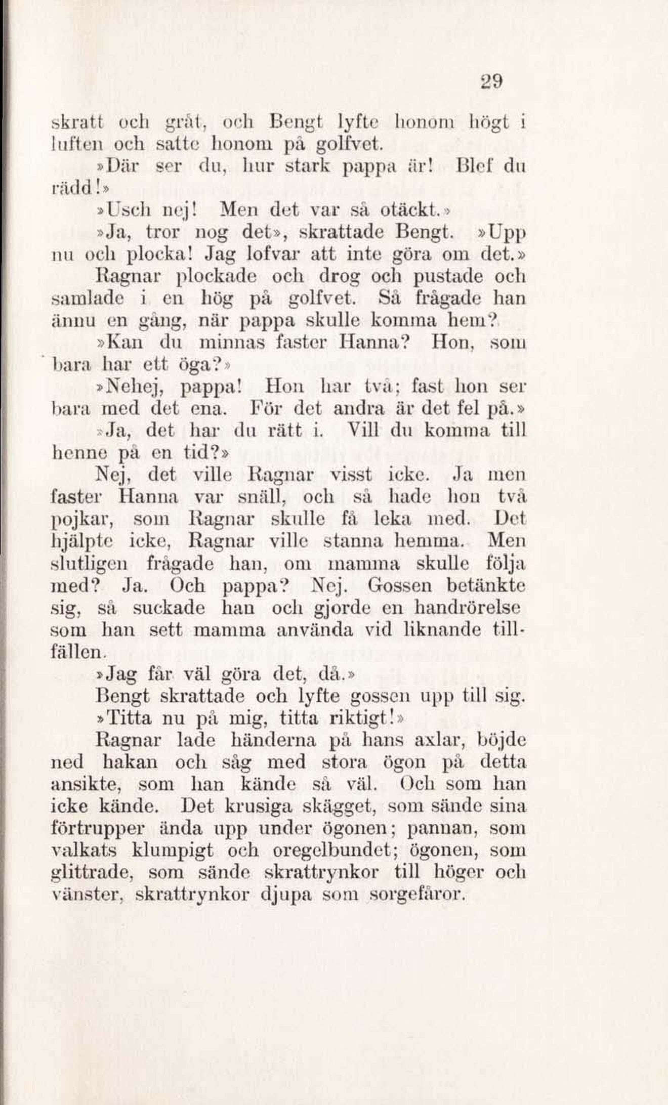 »Nehej, pappa! Hon har tvä; fast hon ser