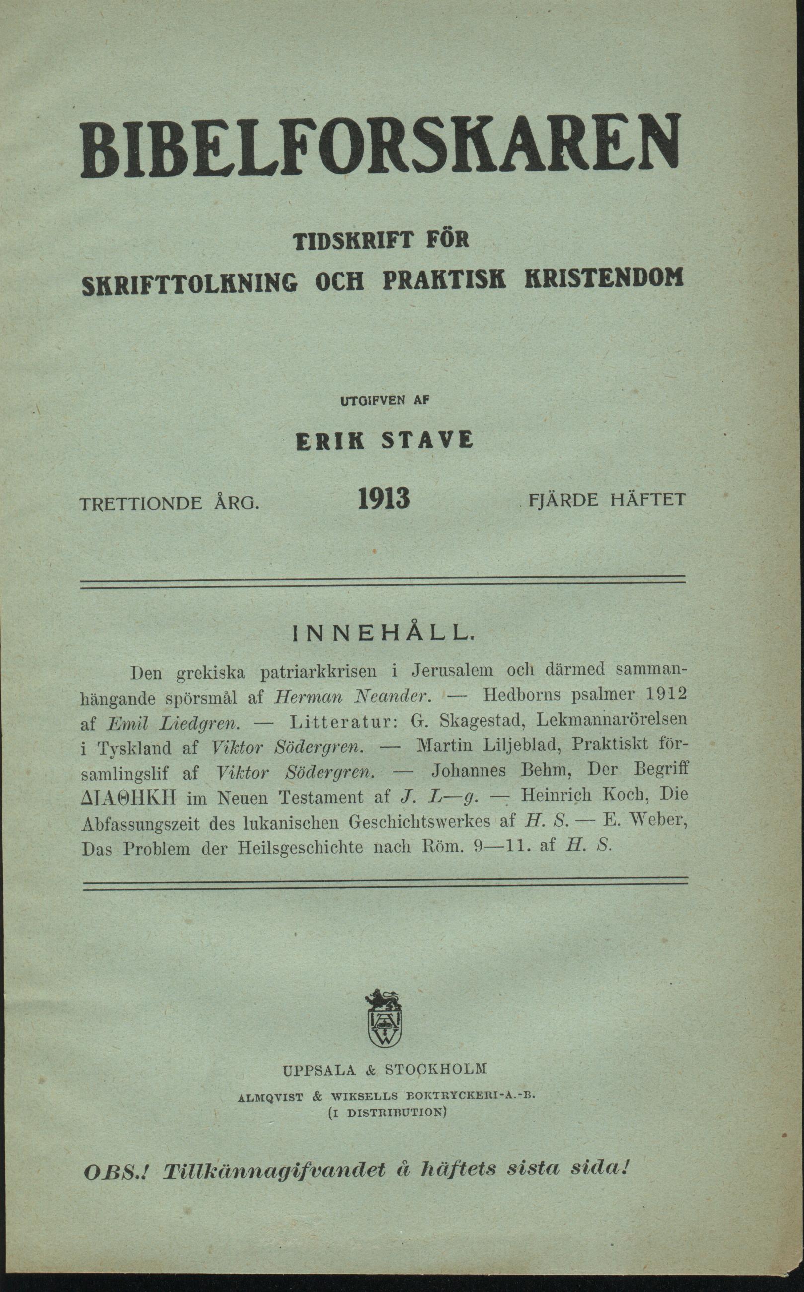 TRETTIONDE ÄRO. 1913 FJÄRDE HÄFTET