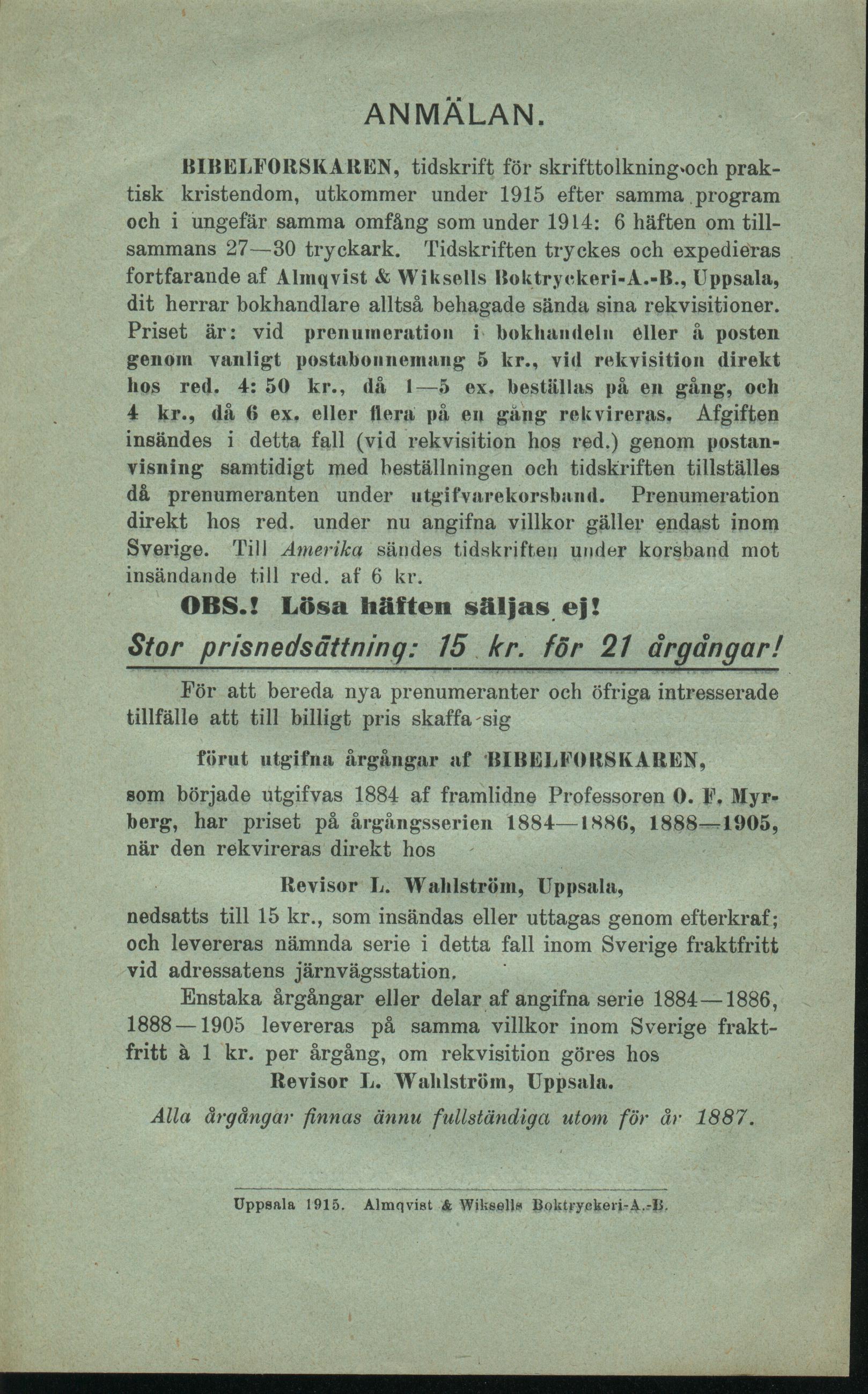 Uppsala 1915. Almqvist & Wiksells Boktryckeri-A.-lf.