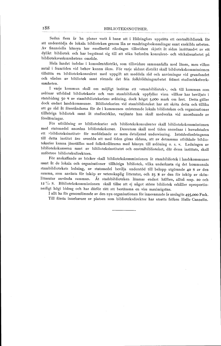 med statsmedel anordna bibliotekskurser. Dessutom skall med tiden anordnas i huvudstaden