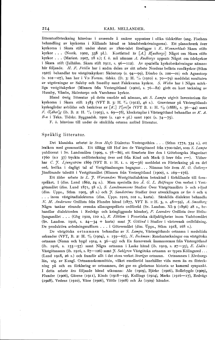 Västgötanamn (ib. 1916, s. 87—126) samt J. Sahlgren Västgötska ortnamn av typen Kölingared . . .
