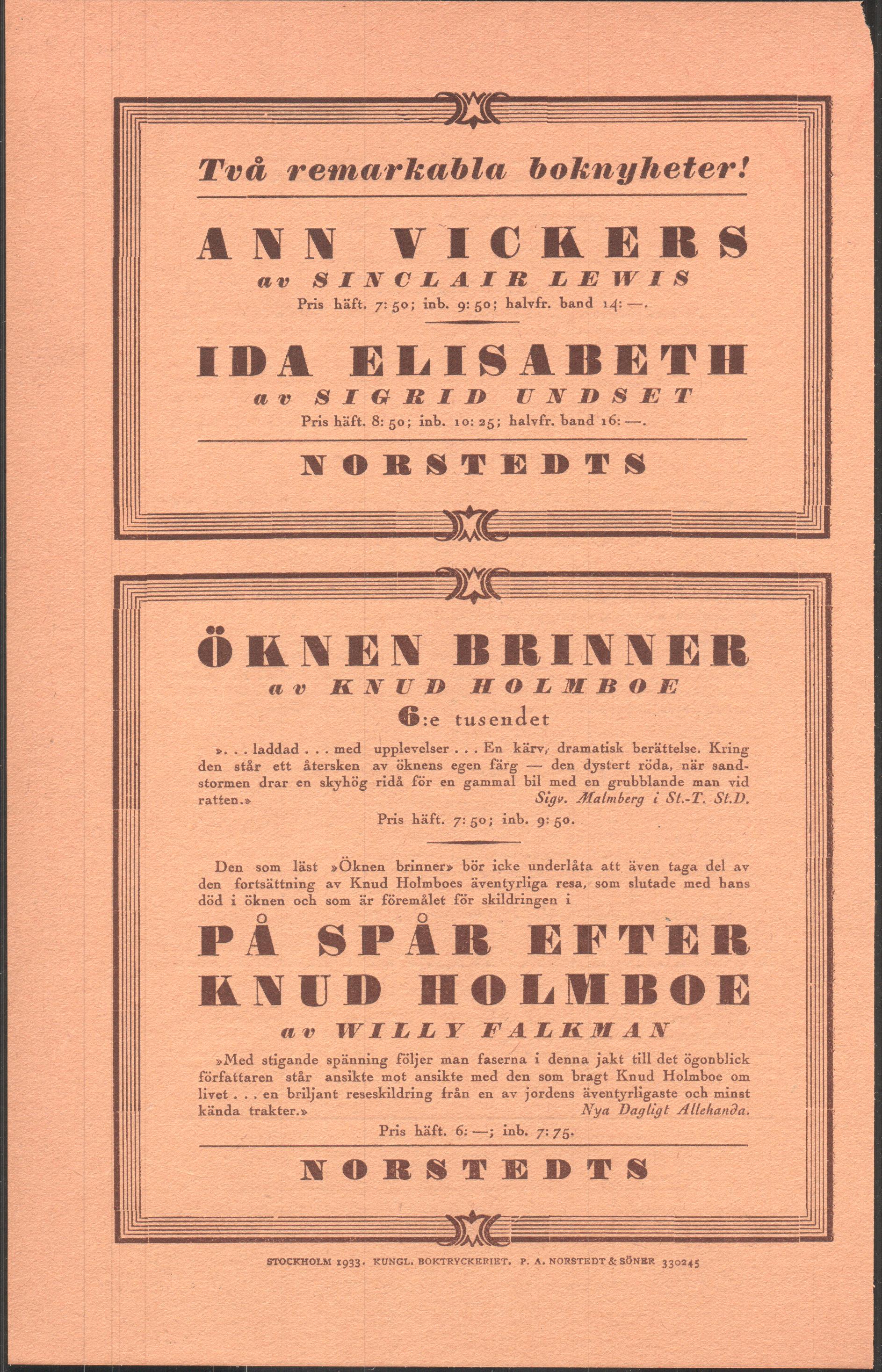 STOCKHOLM 1933. KUNGL. BOKTRYCKERIET, P. A. NORSTEDT & SÖNER 330245