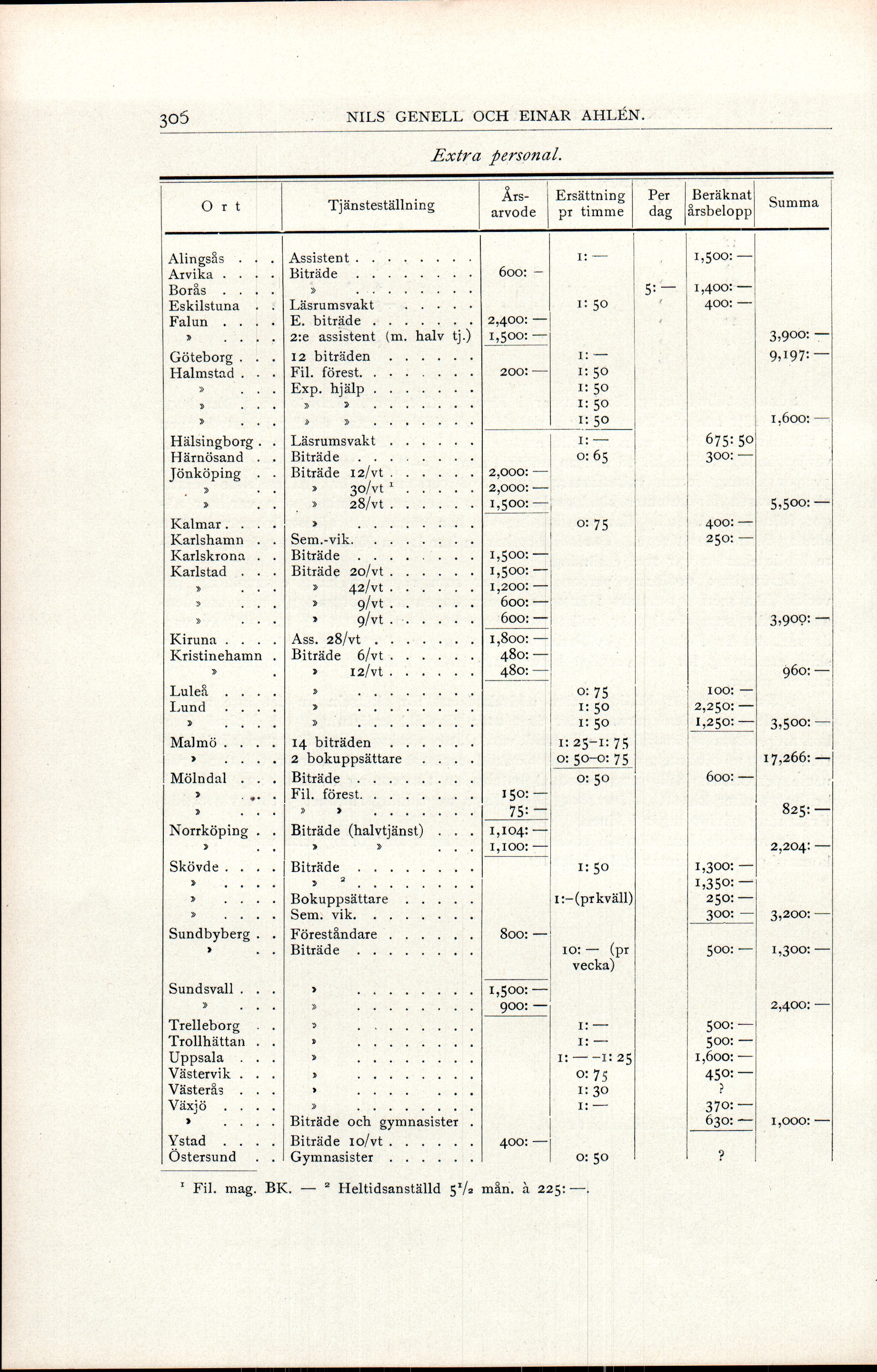 ’ Fil. mag. BK. — = Heltidsanställd 5’/= män. ä 225:—.