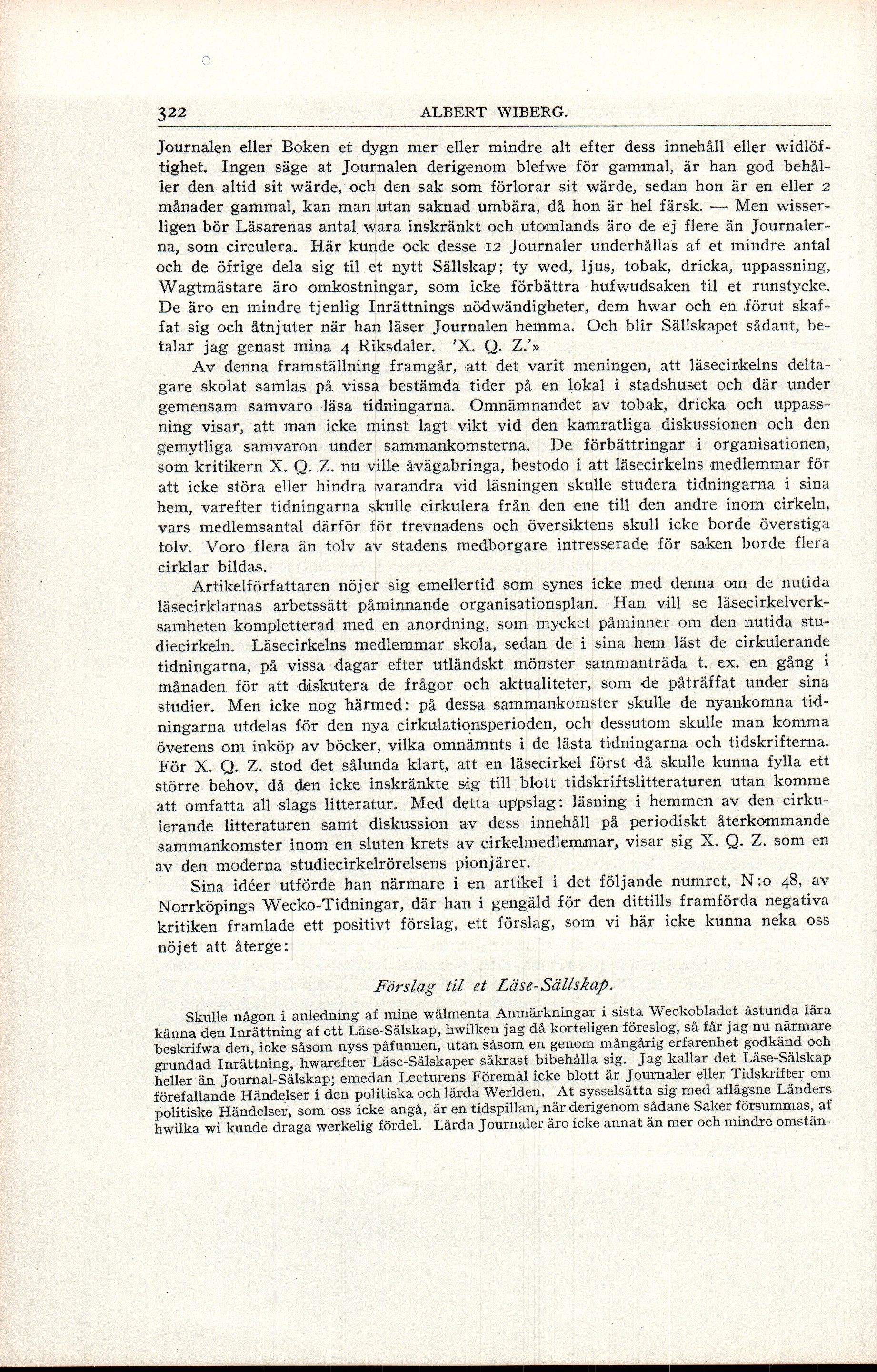 För X. Q. Z. stod det sålunda klart, att en läsecirkel först då skulle kunna fylla ett