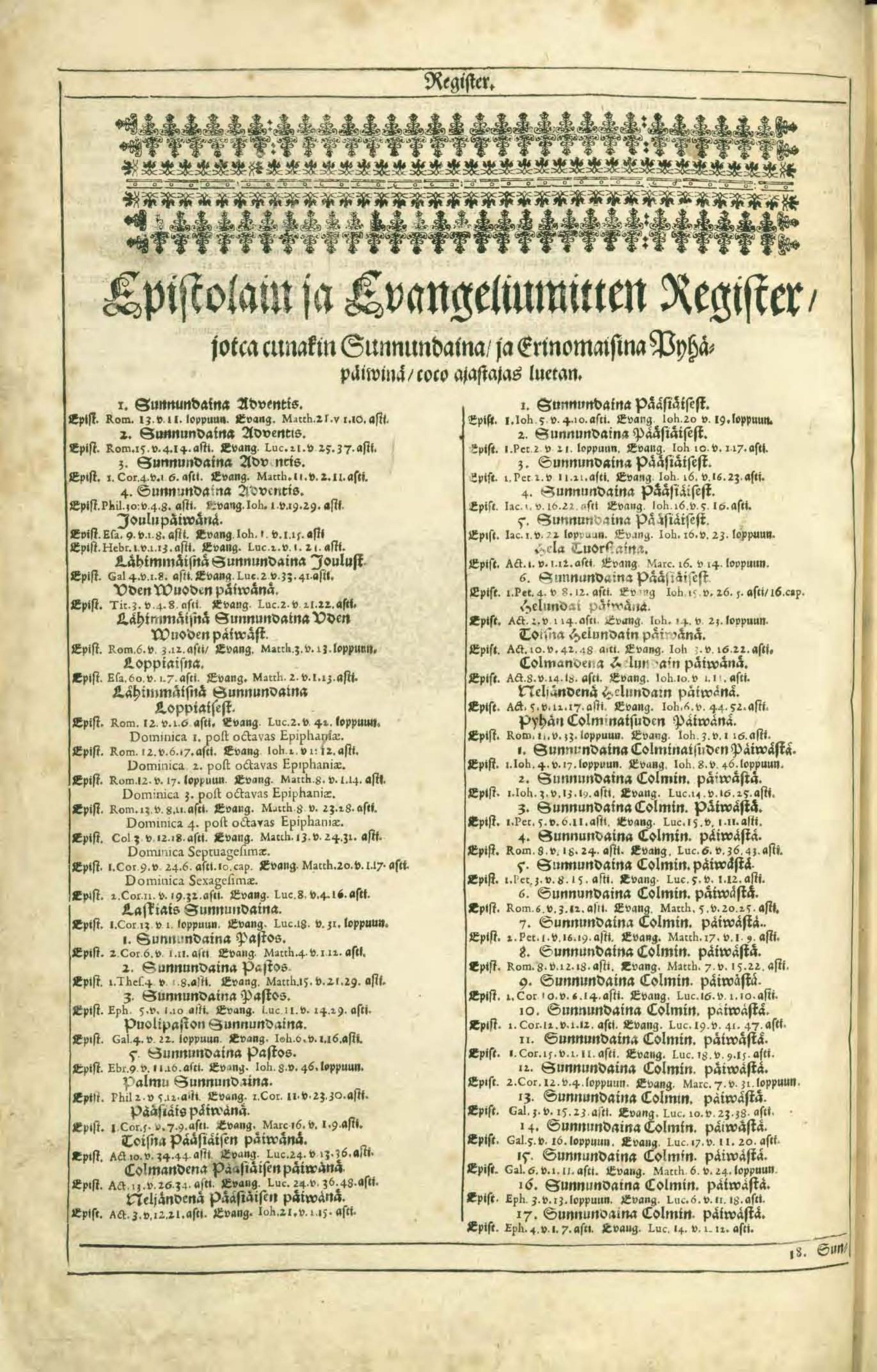 eysvd. vbjj;.v;.-;"a"-in Evangx. :,cor. ".v-2;,;o.asis. :3. Sunnundaina Colinm, päiwåstä.
