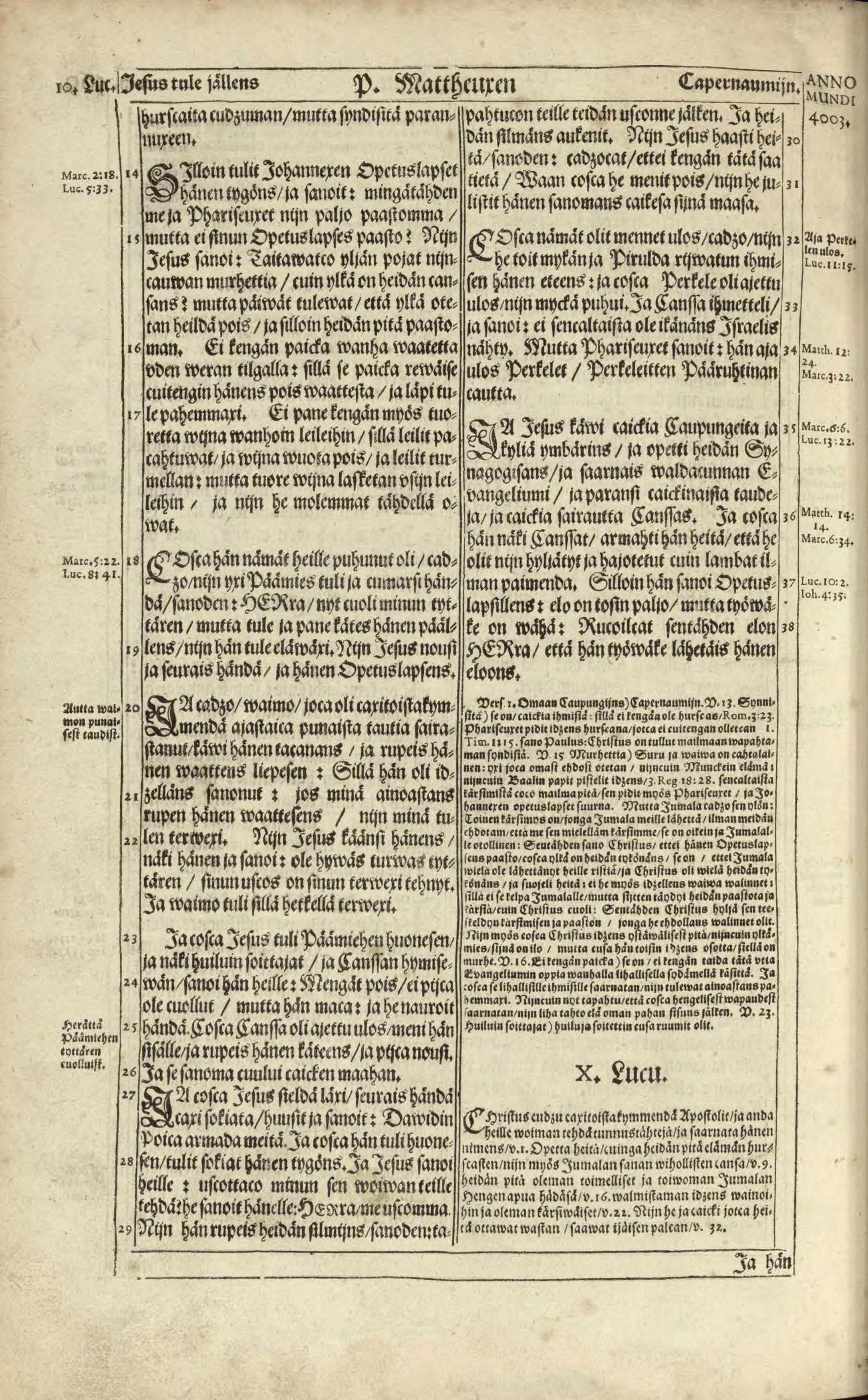 Ja cosca Jesus tuli Päämiehen hnonesen"
