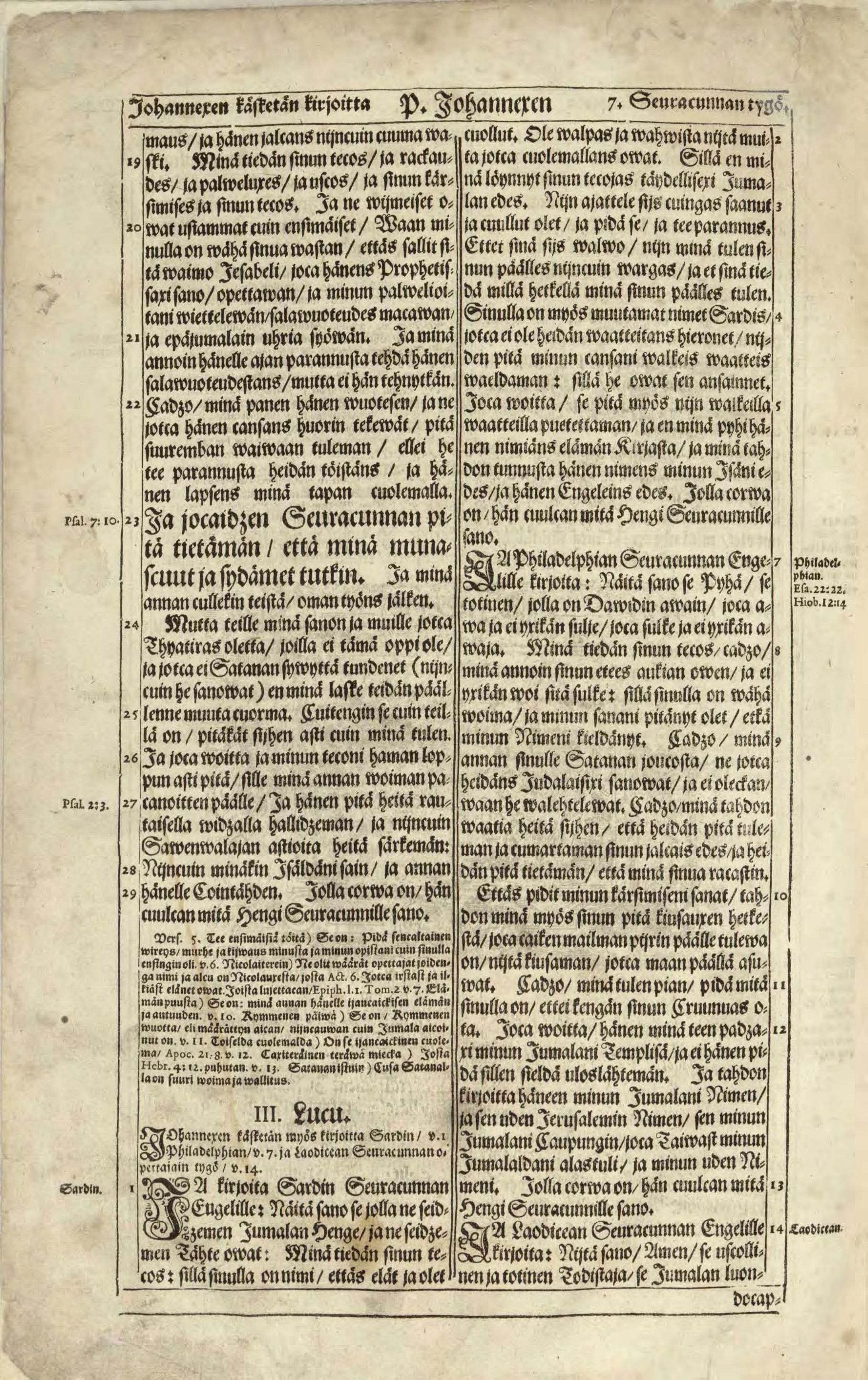 Philaderphtan/v. 7. ja Caodn:ean Seuracunnan o-