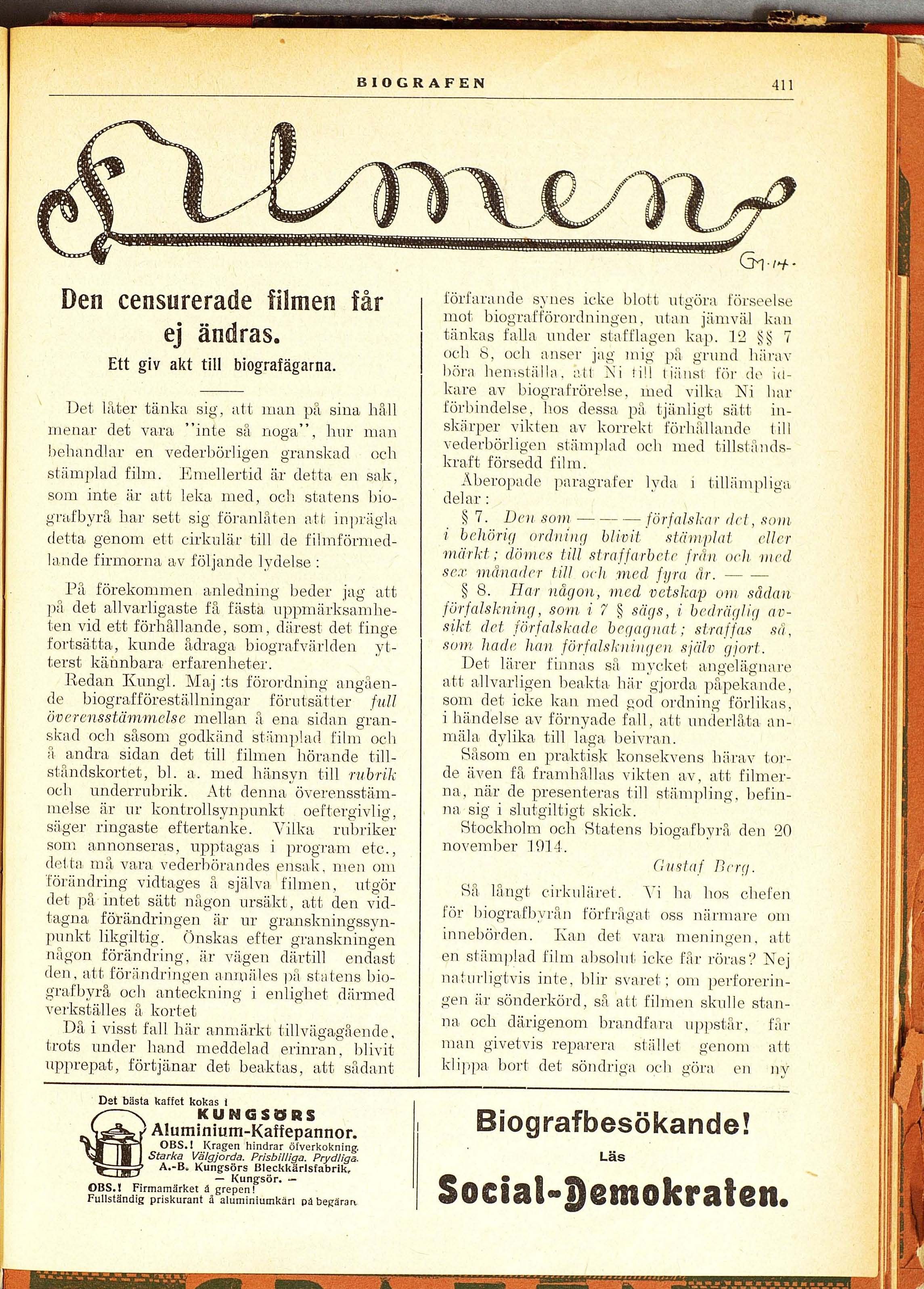 Stockholm och. Statens biogafbyrå den 20