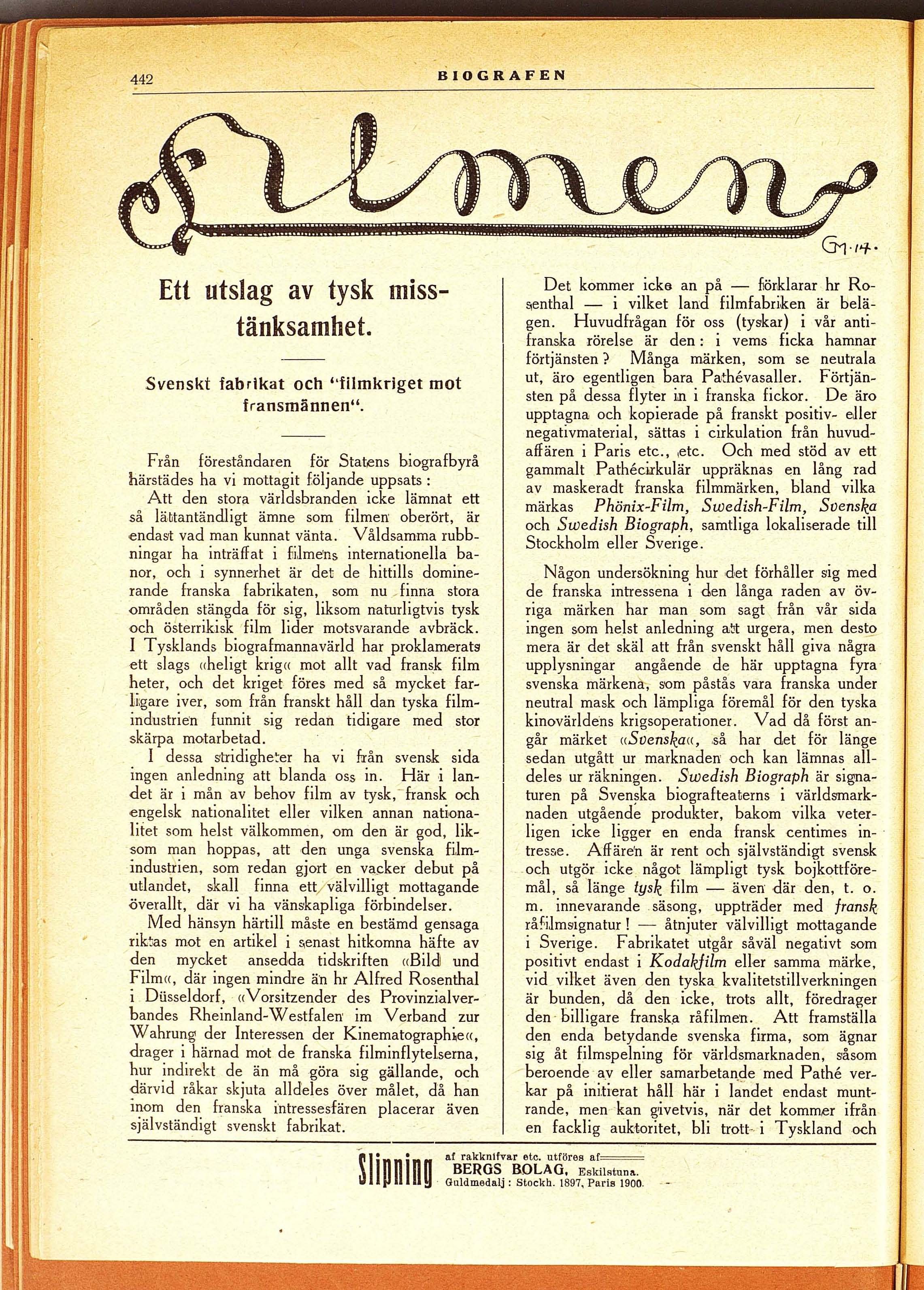 alldeles ur räkningen. Swedish Biograph är