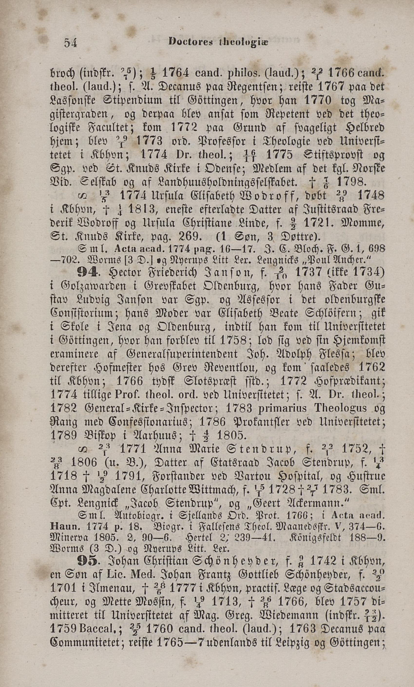 Sml. Auløbiøgr. i Sjellands Ord. Prot. 1766; i Acta acad.