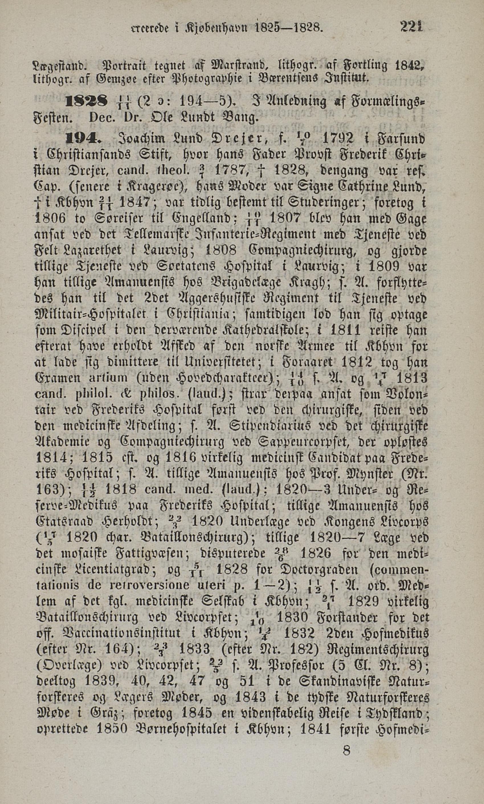 medicinske Licentiatgrad; og ø/r 1828 for Doctorgraden