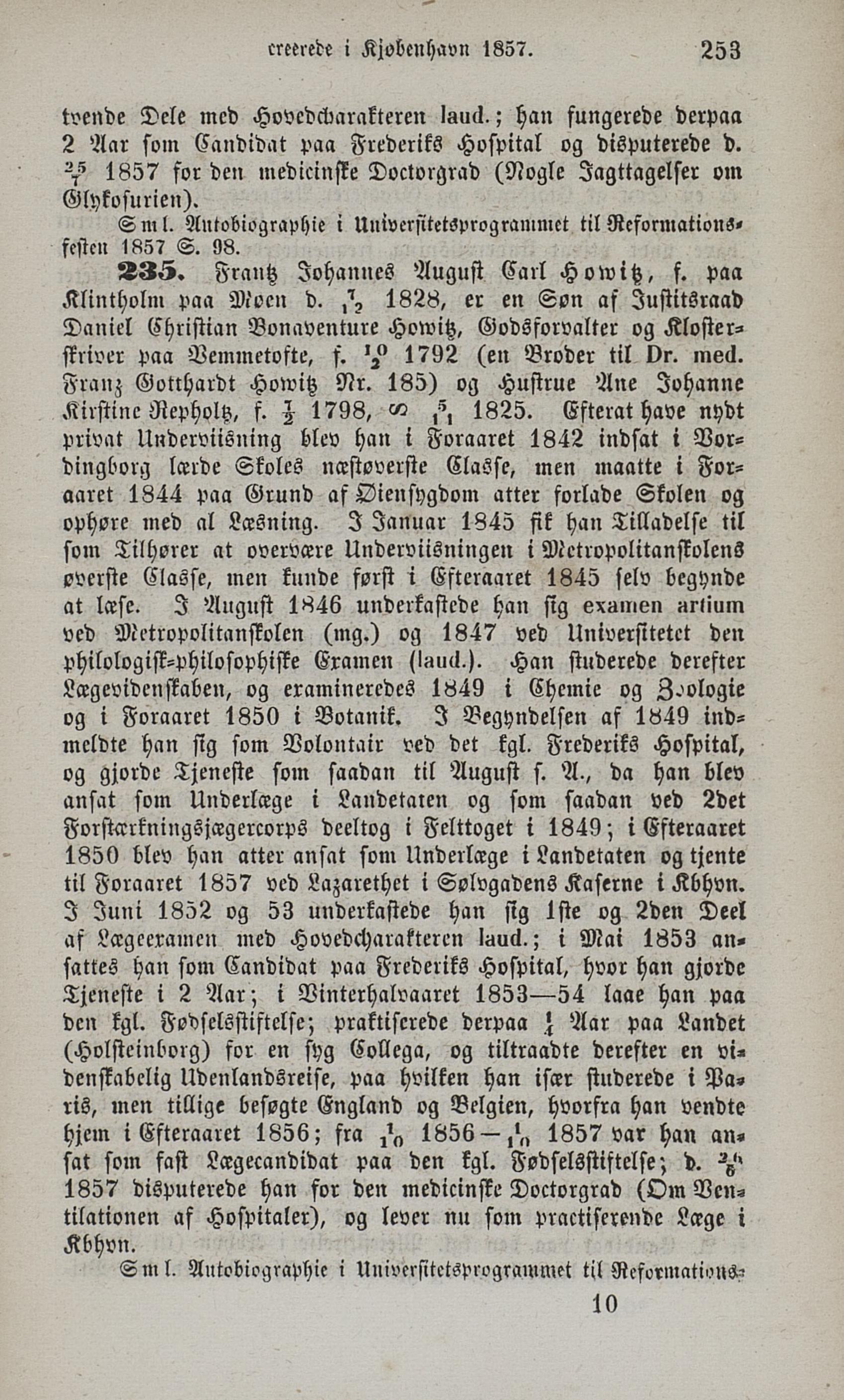 af Lægeexamen med Hovedcharakteren laud.; i Mai 1853