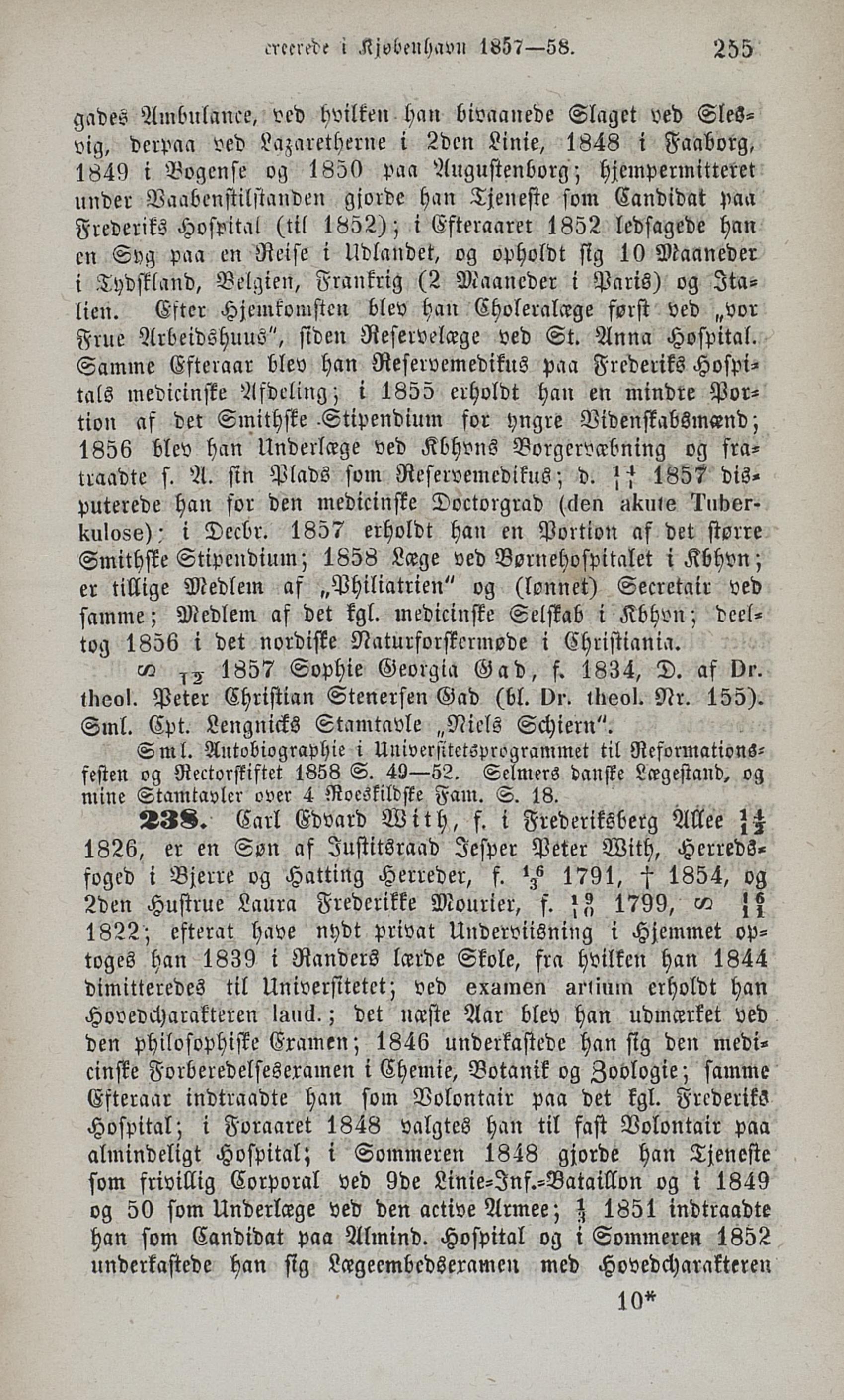 Smithske Stipendium; 1858 Læge ved Børnehospitalet i Kbhvn;