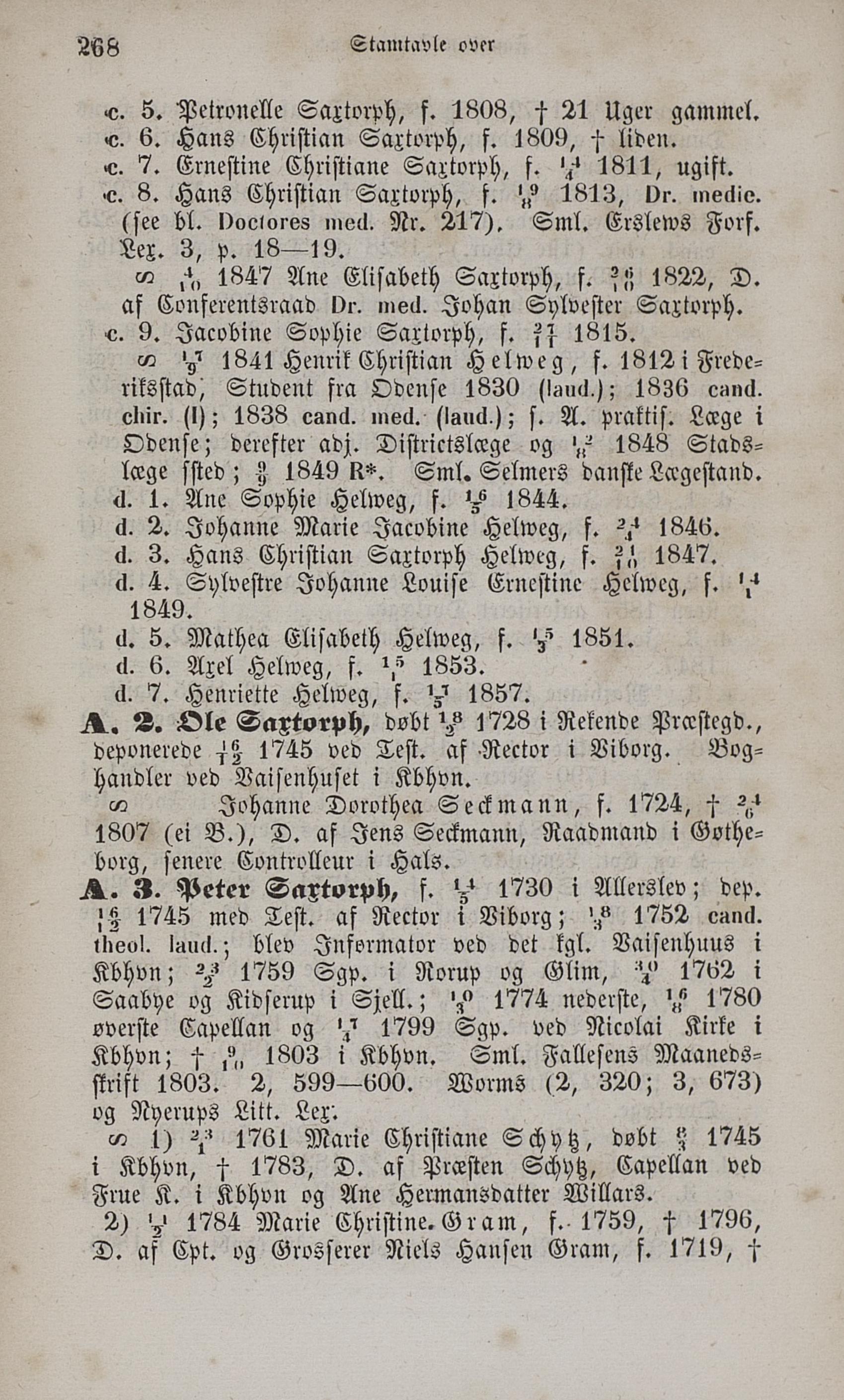 6. Hans Christian Saxtorph, f. 1809, † liden.
