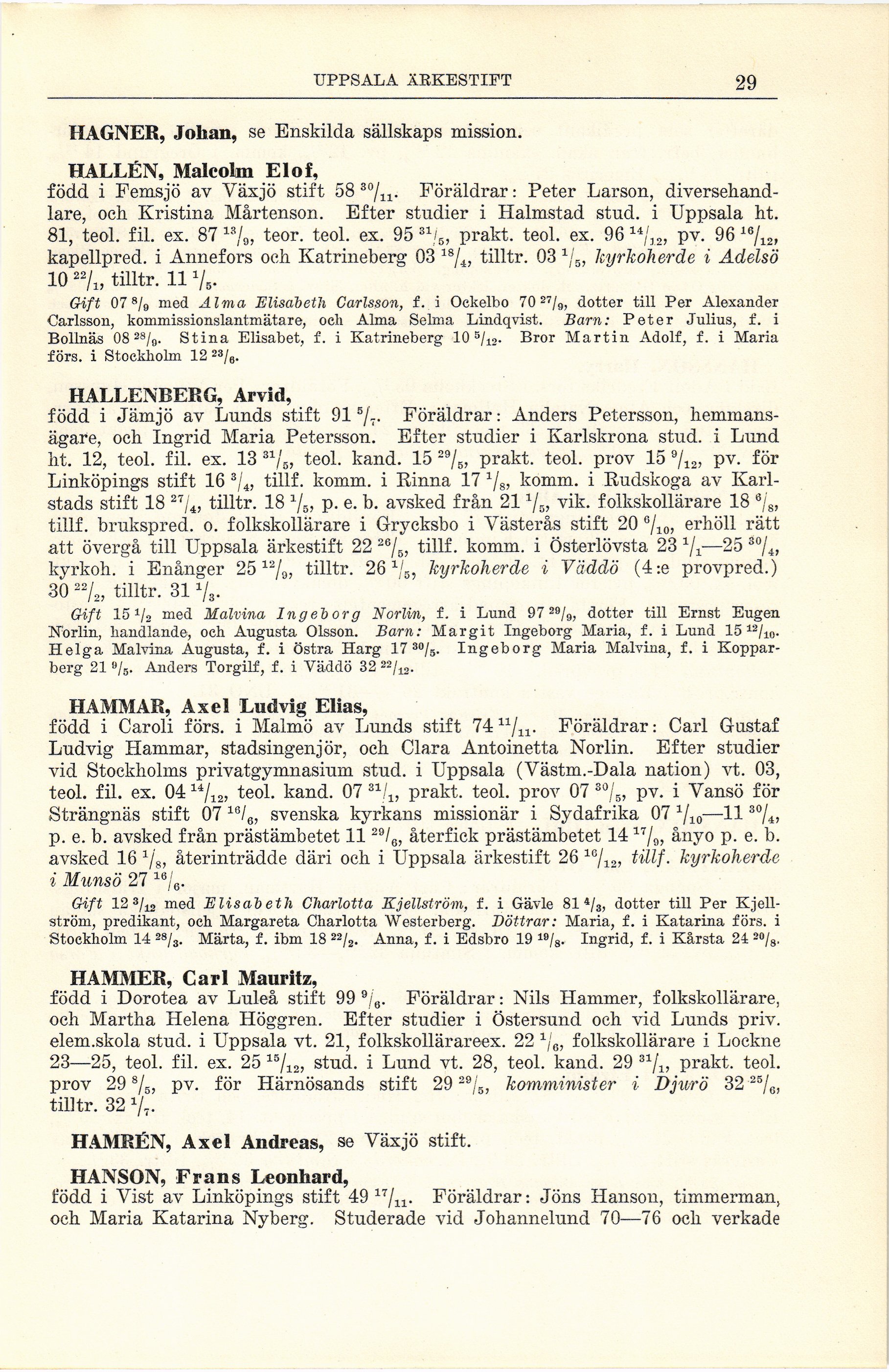 23—25, teol. fil. ex. 25 15/12, stud. i Lund vt. 28, teol. kand. 29 31/1; prakt. teol.