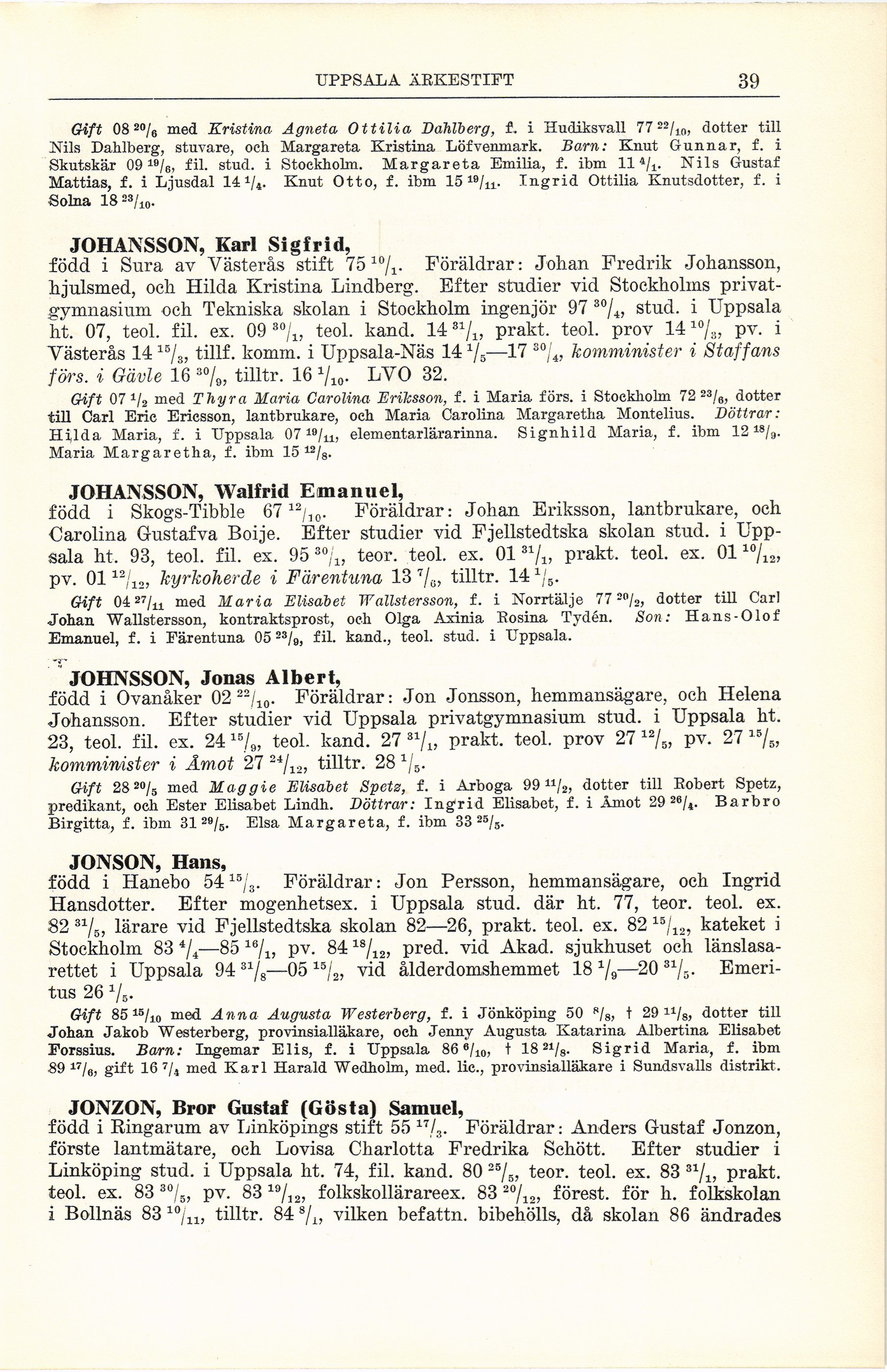 Johansson. Efter studier vid Uppsala privatgymnasium stud. i Uppsala ht.