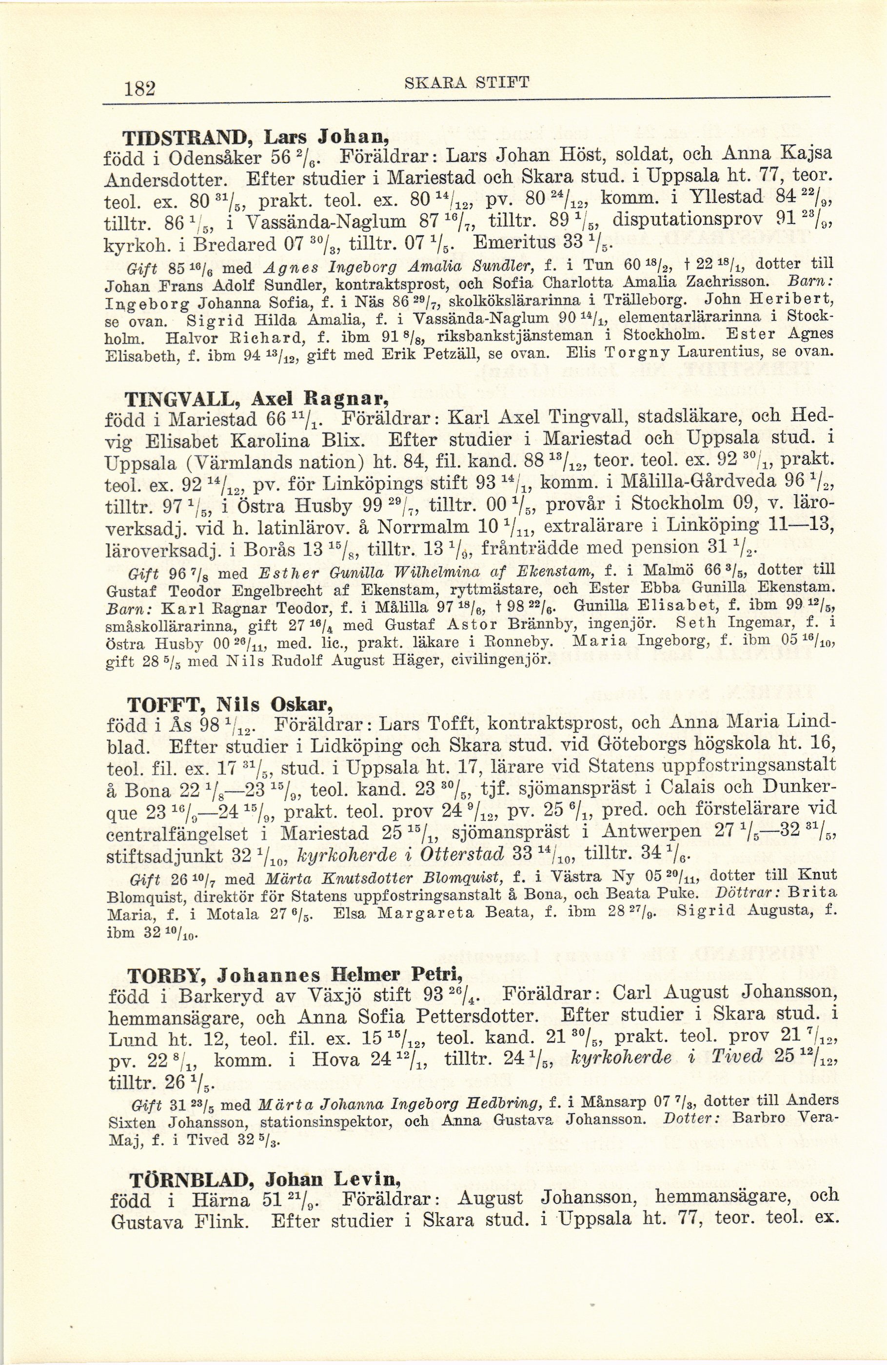 Lund ht. 12, teol. fil. ex. 15 "/„, teol. kand. 2130/5, prakt. teol. prov 217/1„