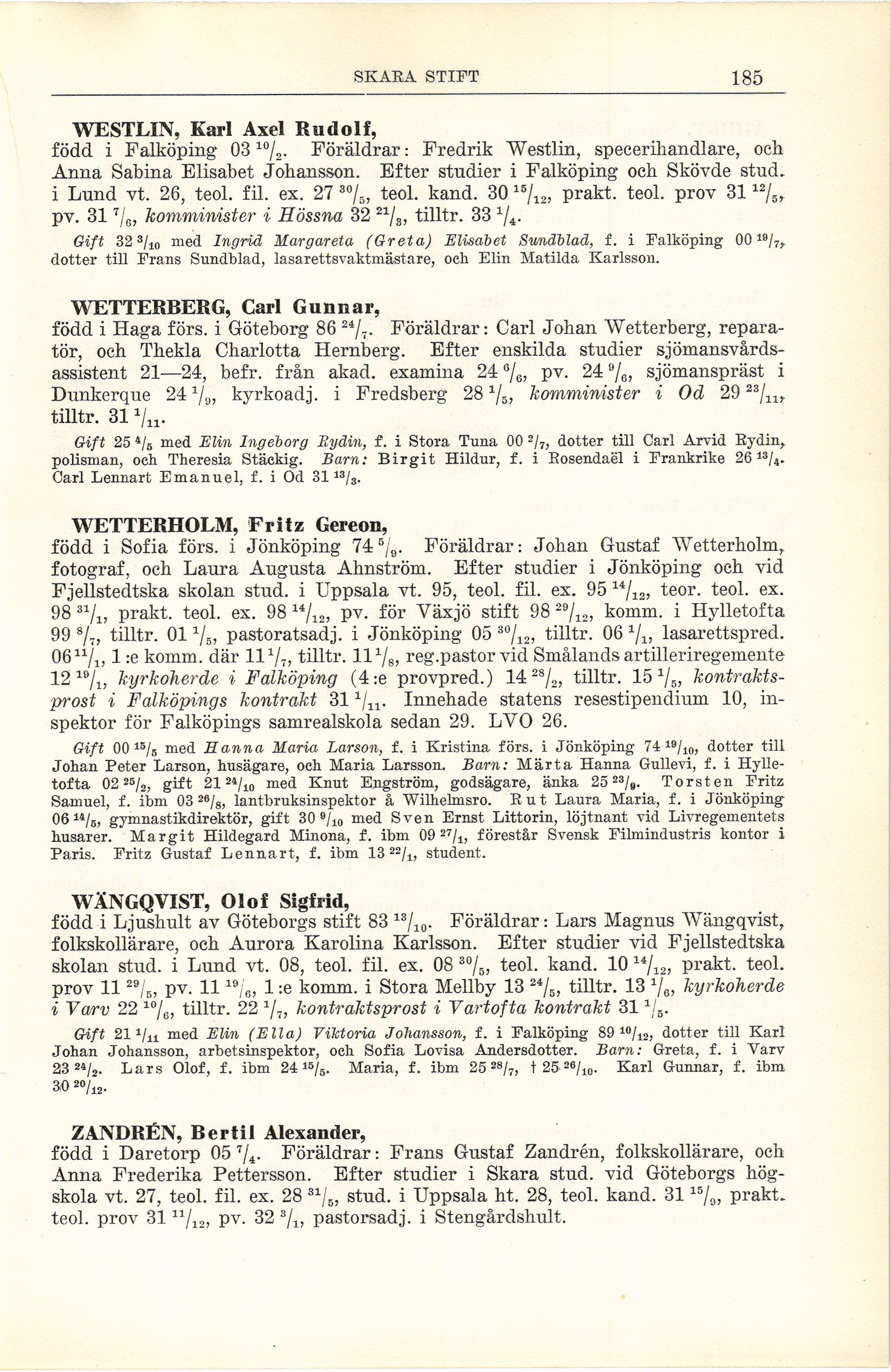 högskola vt. 27, teol. fil. ex. 28 375, stud. i Uppsala ht. 28, teol. kand. 31170, prakt,