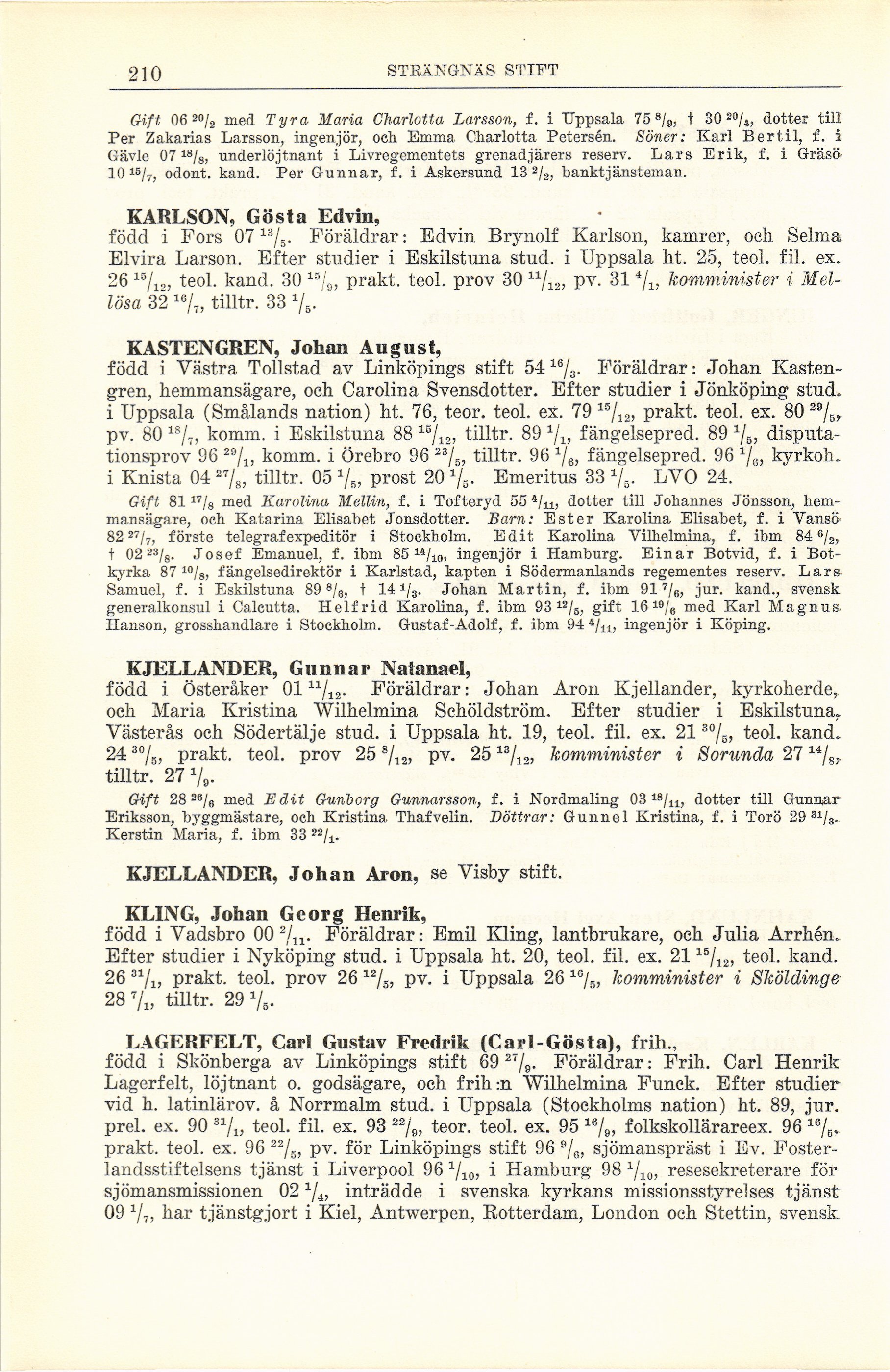 Västerås oeh Södertälje stud. i Uppsala ht. 19, teol. fil. ex. 2130/5, teol. kand.