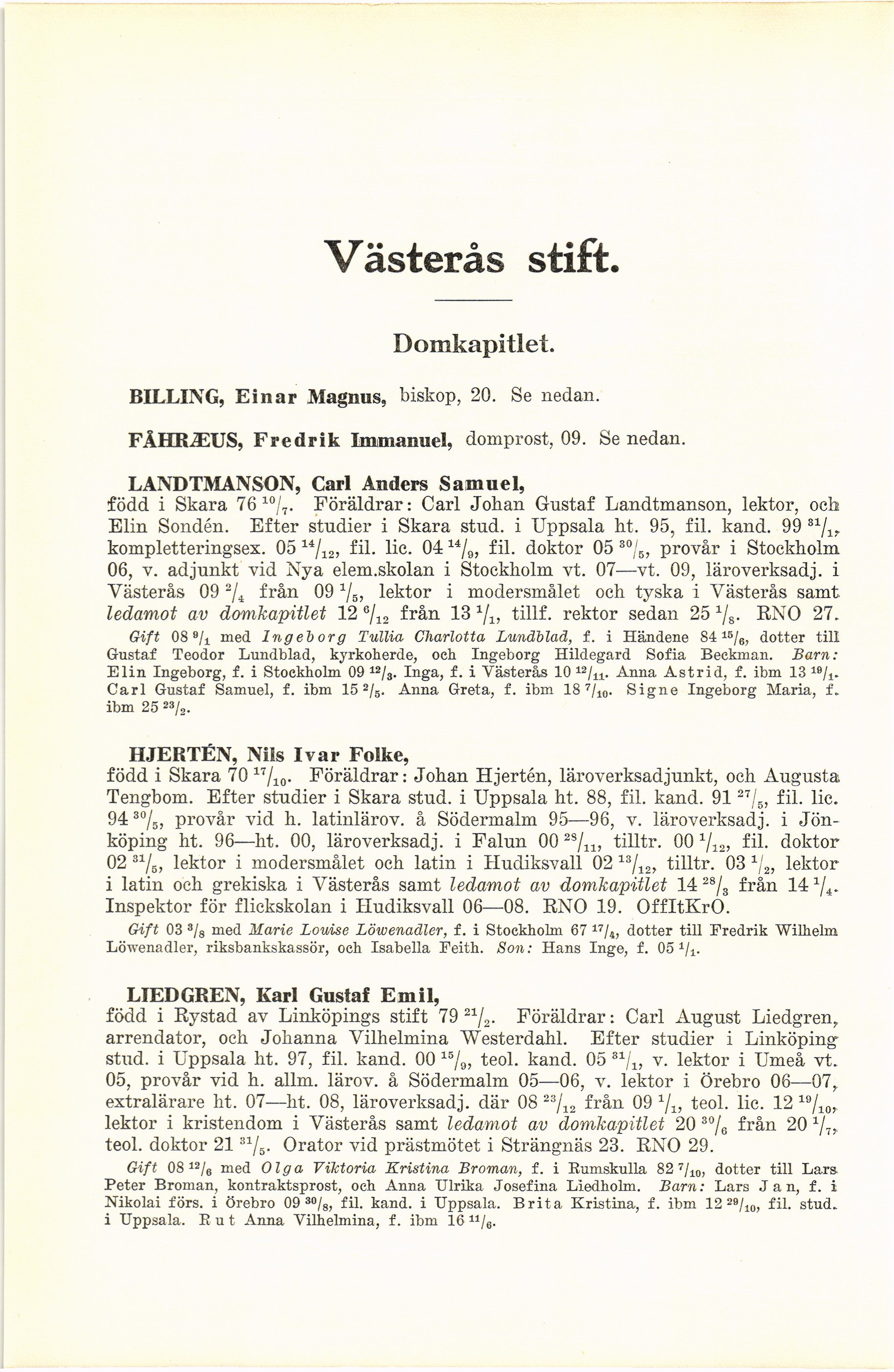 BILLING, Einar Magnus, biskop, 20. Se nedan.