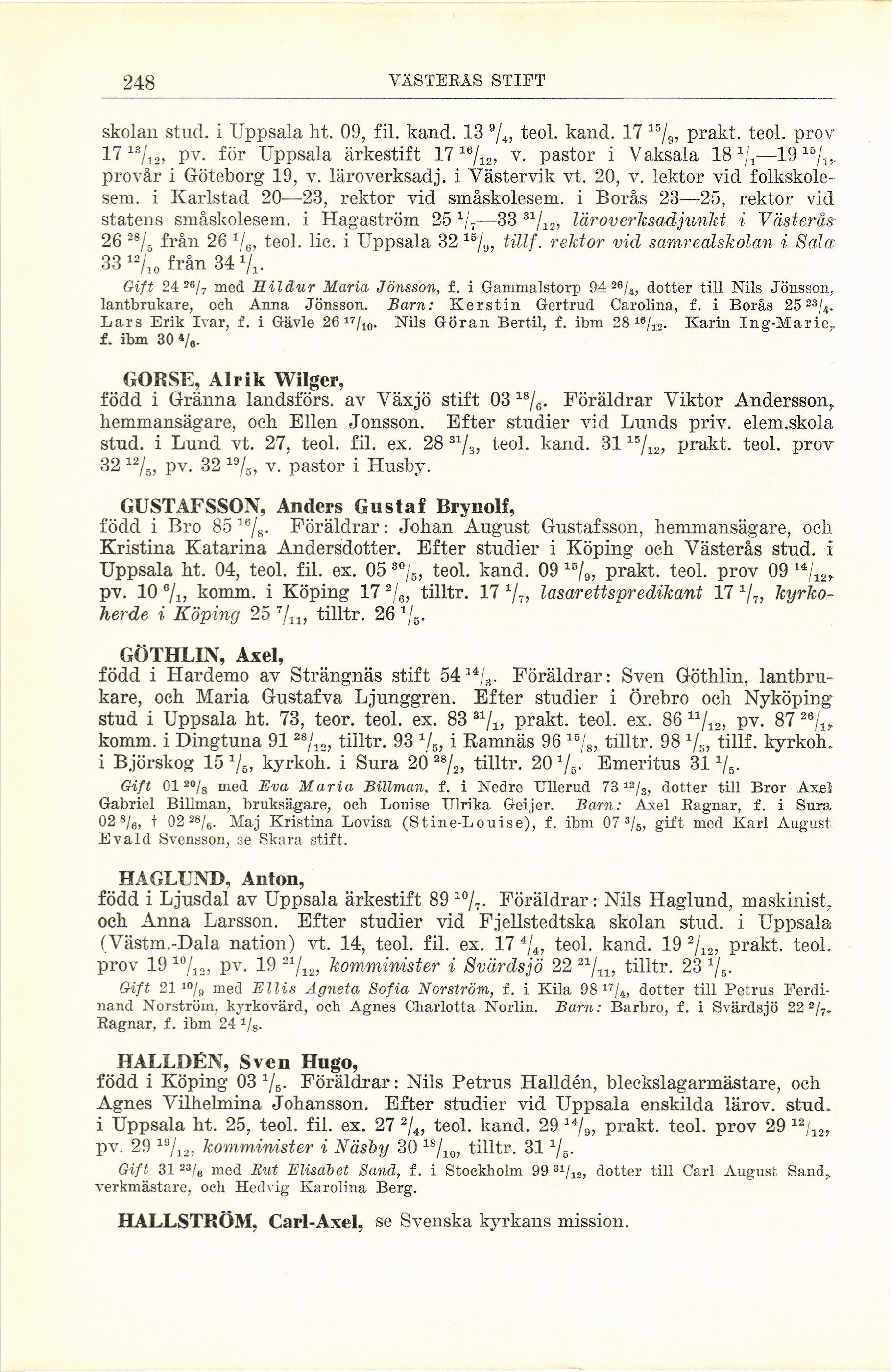(Västm.-Dala nation) vt. 14, teol. fil. ex. 17 4/4, teol. kand. 19 2/12, prakt. teol.