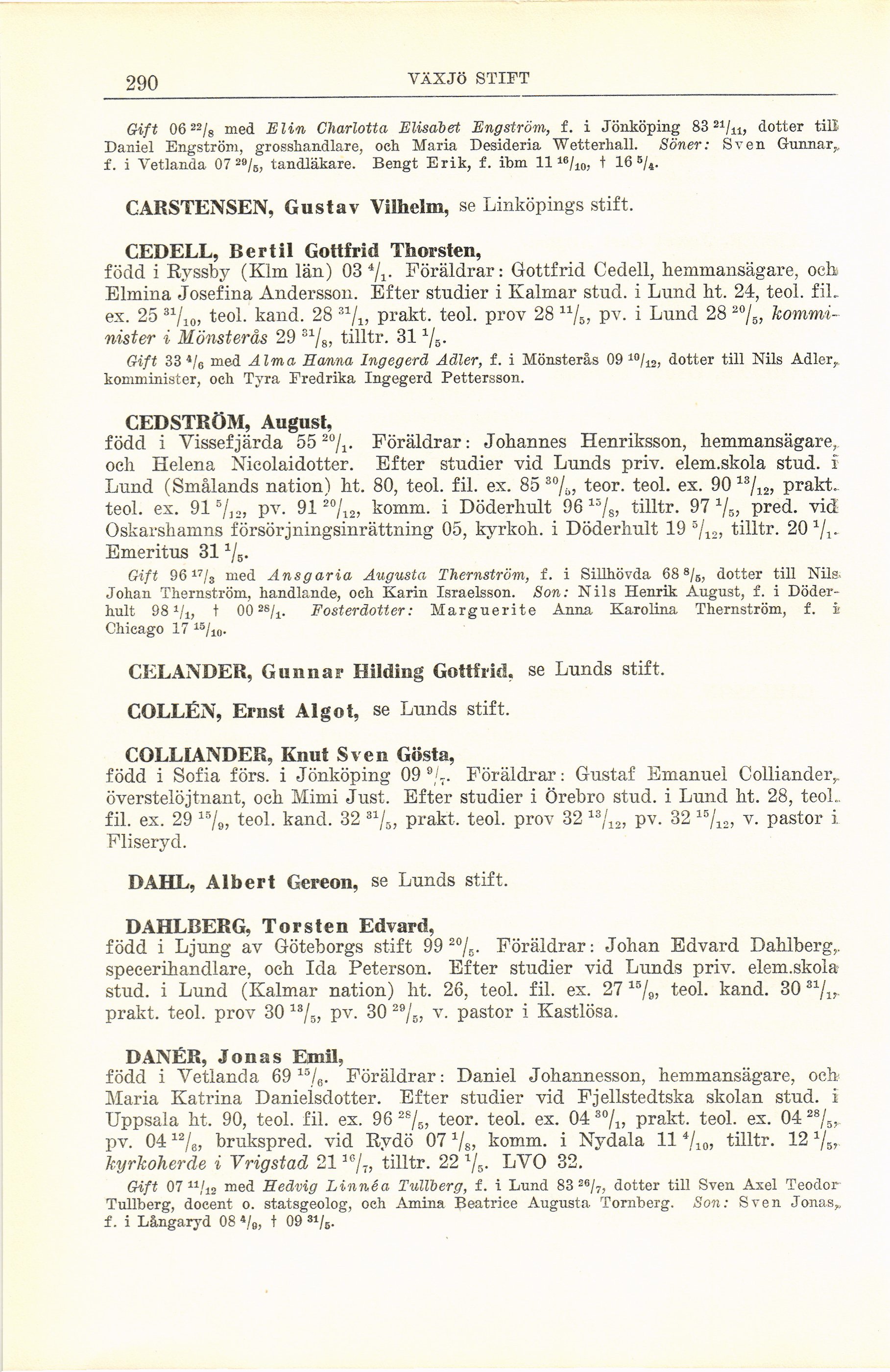 fil. ex. 29 15/9, teol. kand. 32 31/5, prakt, teol. prov 32 1S/12, pv. 32 15/12, v. pastor i