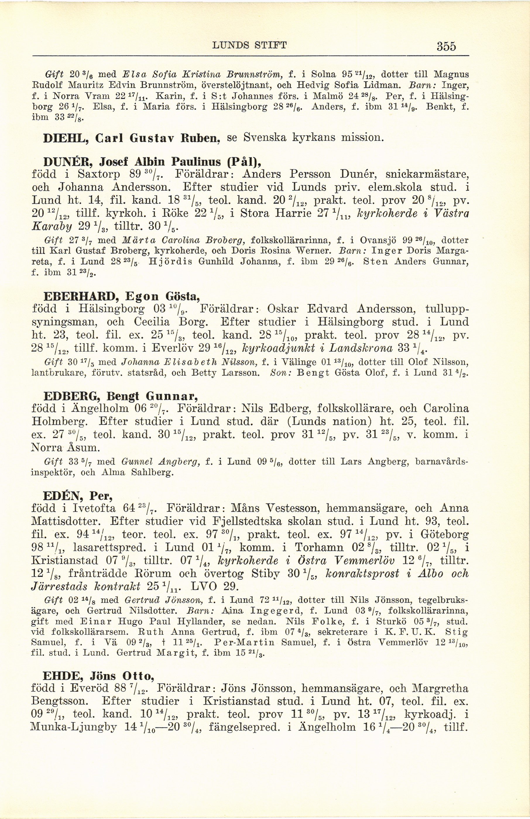 Lund ht. 14, fil. kand. 18 sl/5, teol. kand. 20 2/12, prakt. teol. prov 20 8/12, pv.