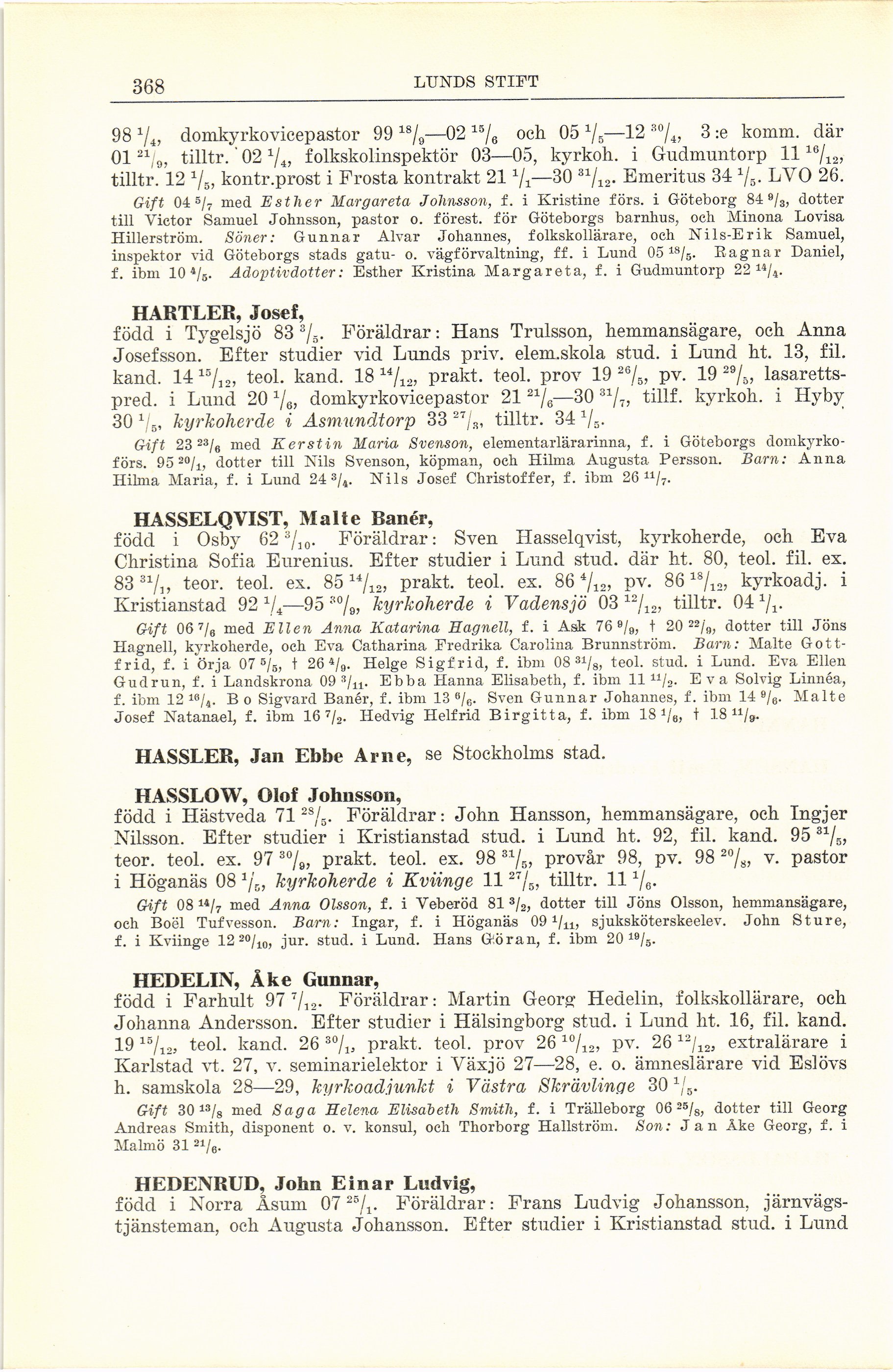 0121/„, tilltr. 02 V4, folkskolinspektör 03—05, kyrkoh. i Gudmuntorp 1116/12,