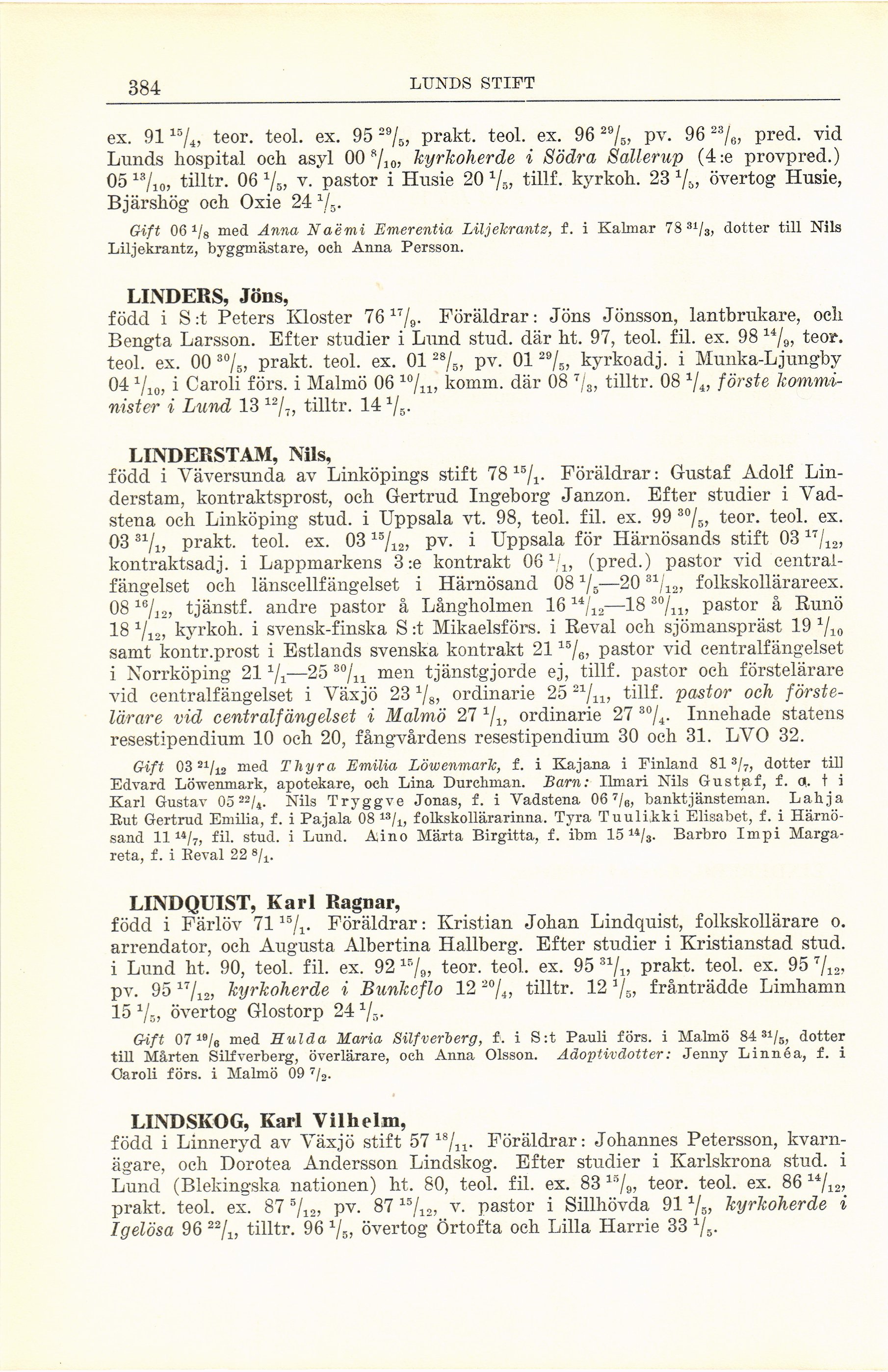 i Lund ht. 90, teol. fil. ex. 92 15/9, teor. teol. ex. 95 31/1, prakt. teol. ex. 95 7/12,
