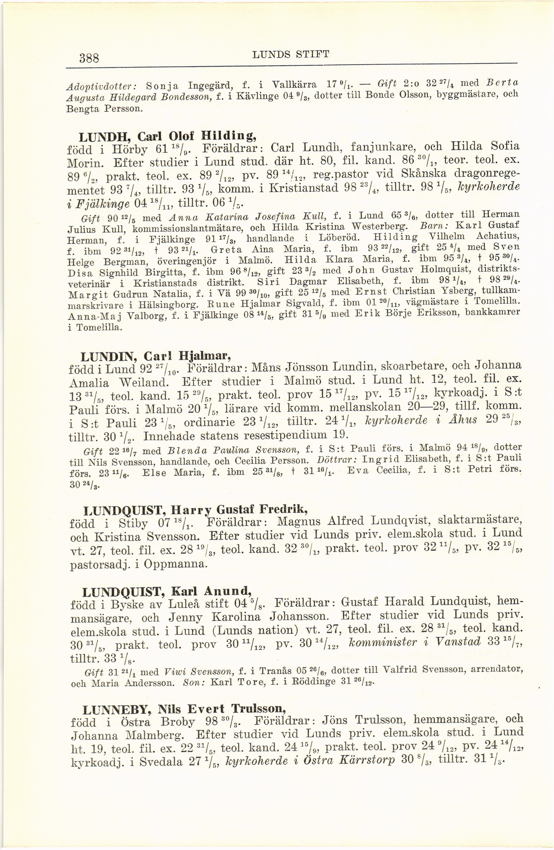 elem.skola stud. i Lund (Lunds nation) vt. 27, teol. fil. ex. 28 31/5, teol. kand.