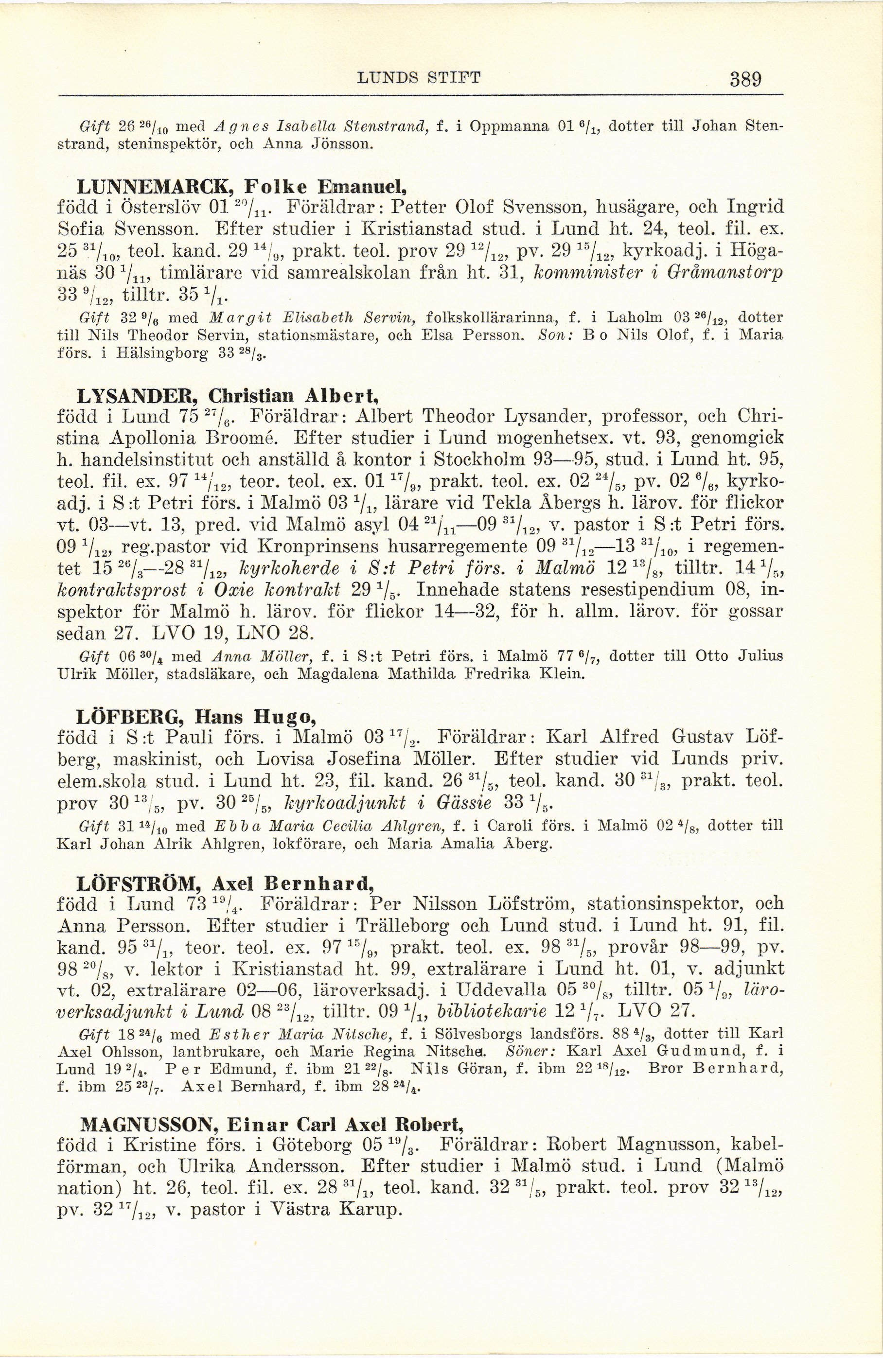 elem.skola stud. i Lund ht. 23, fil. kand. 26 31/5, teol. kand. 30 31/3, prakt. teol.