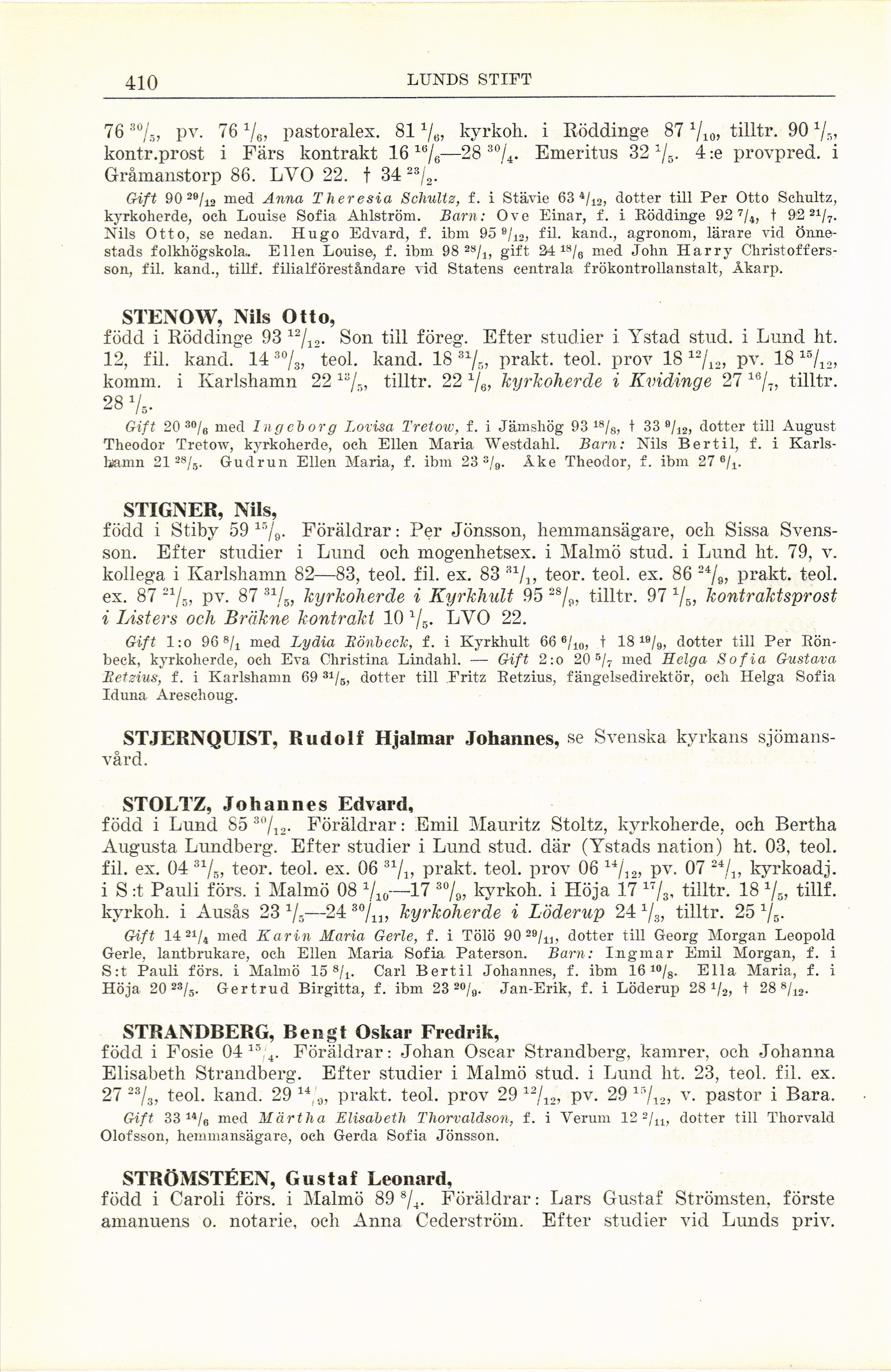 född i Lund 85 30/12. Föräldrar: Emil Mauritz Stoltz, kyrkoherde, och Bertha