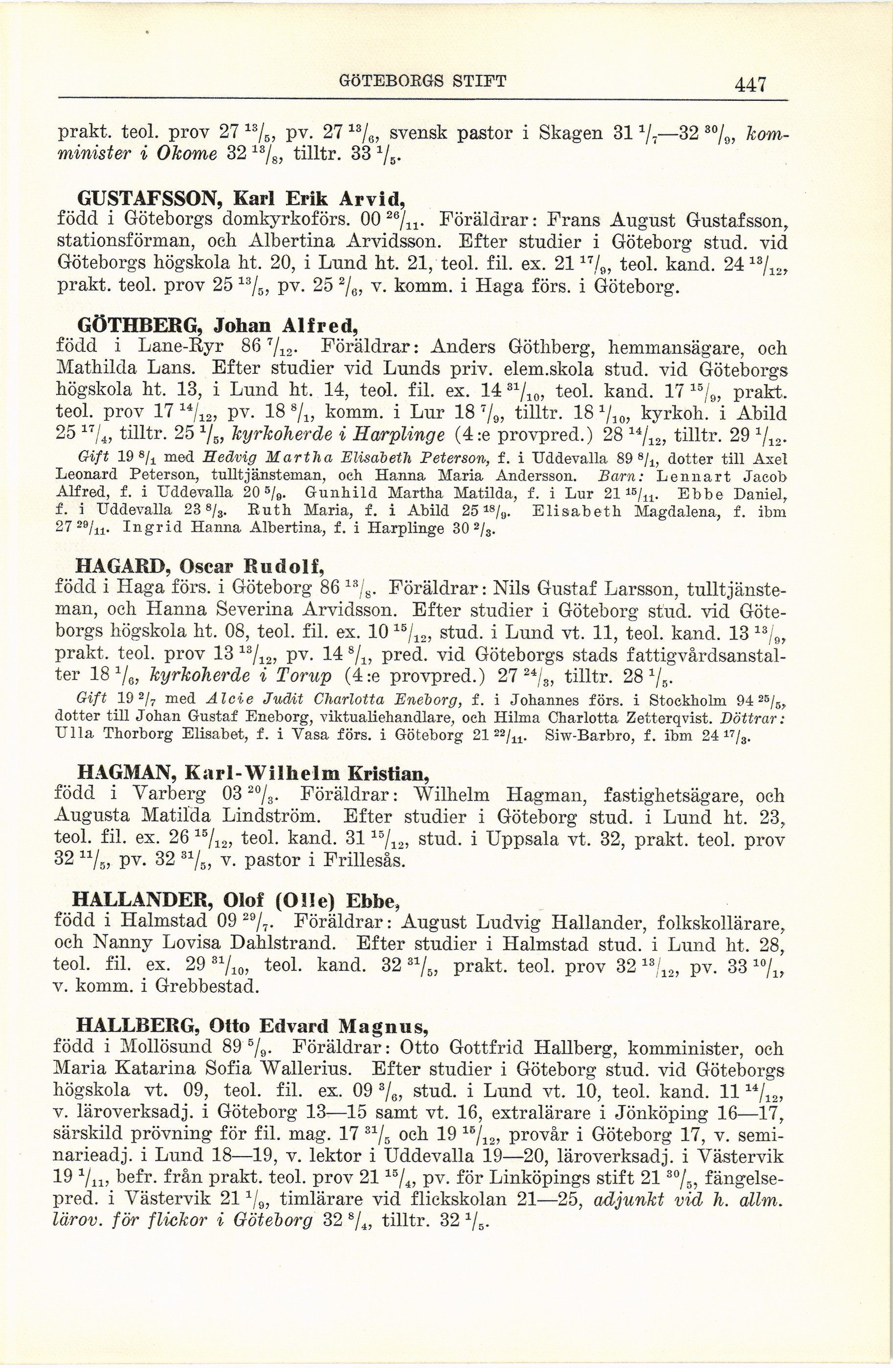 prakt. teol. prov 2513/5, pv. 25 2/e, v. komm. i Haga förs. i Göteborg.
