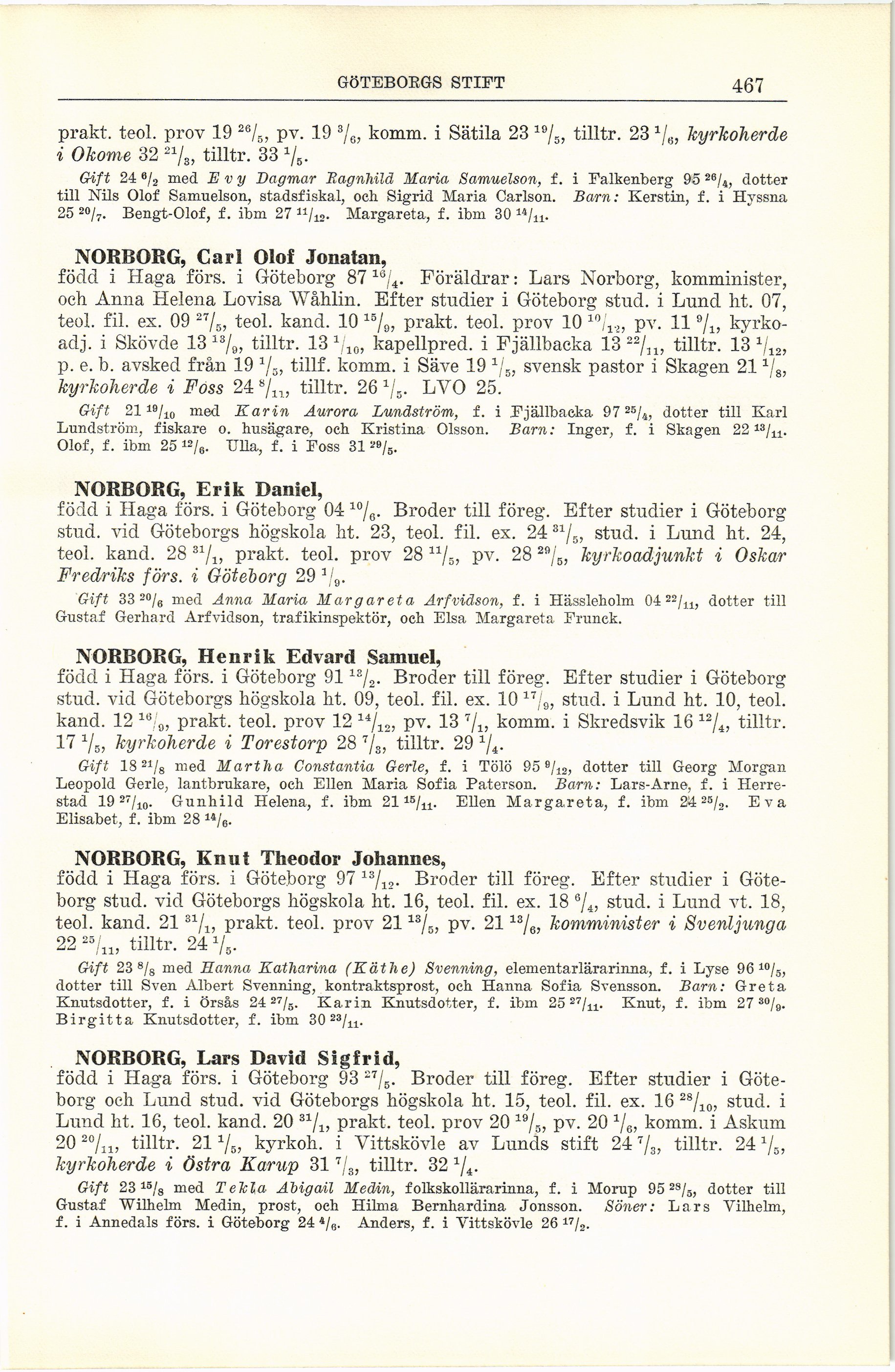 född i Haga förs. i Göteborg 87 ls/4. Föräldrar: Lars Norborg, komminister,
