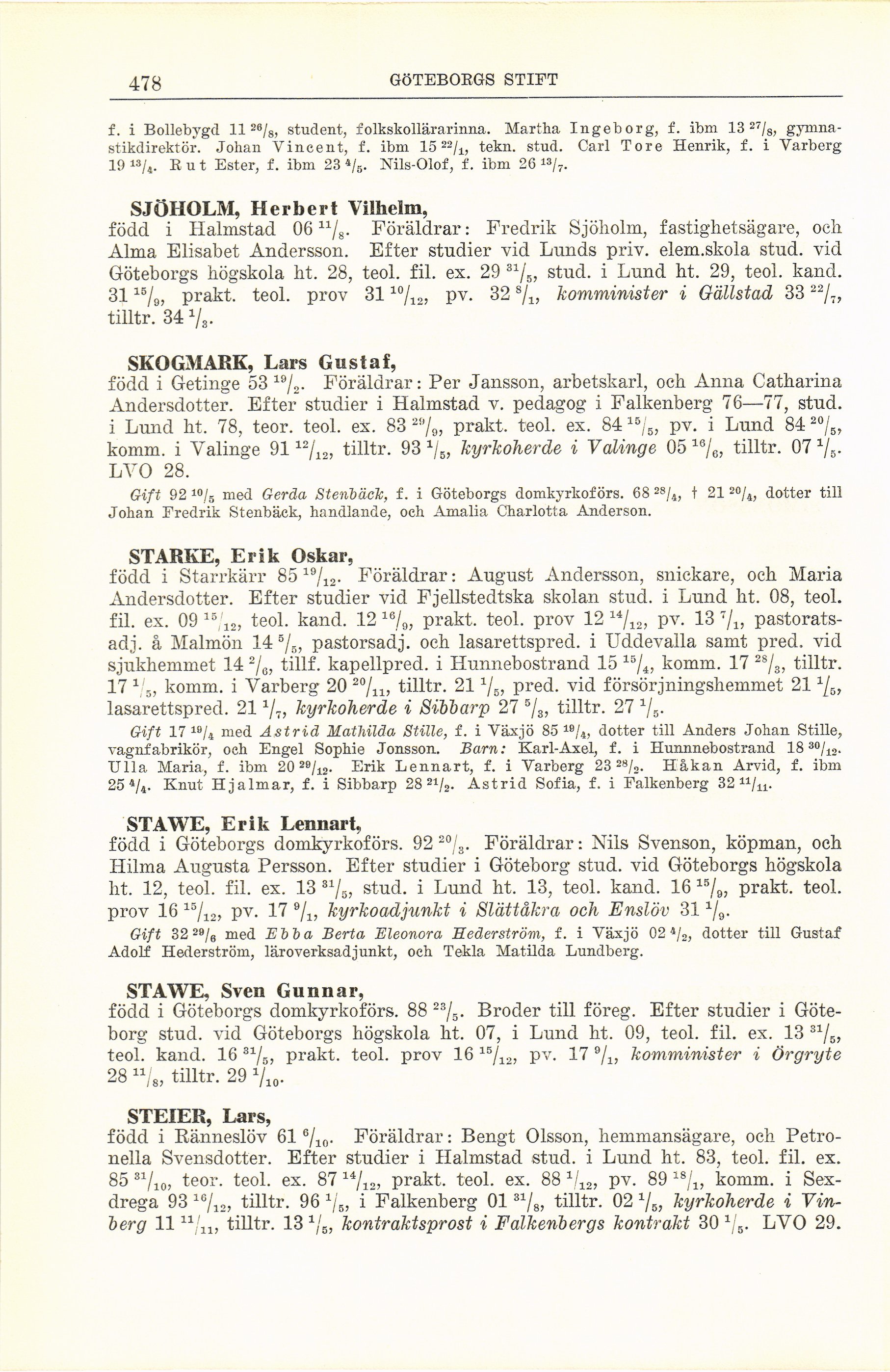 ht. 12, teol. fil. ex. 13 37B, stud. i Lund ht. 13, teol. kand. 16 "/„, prakt. teol.