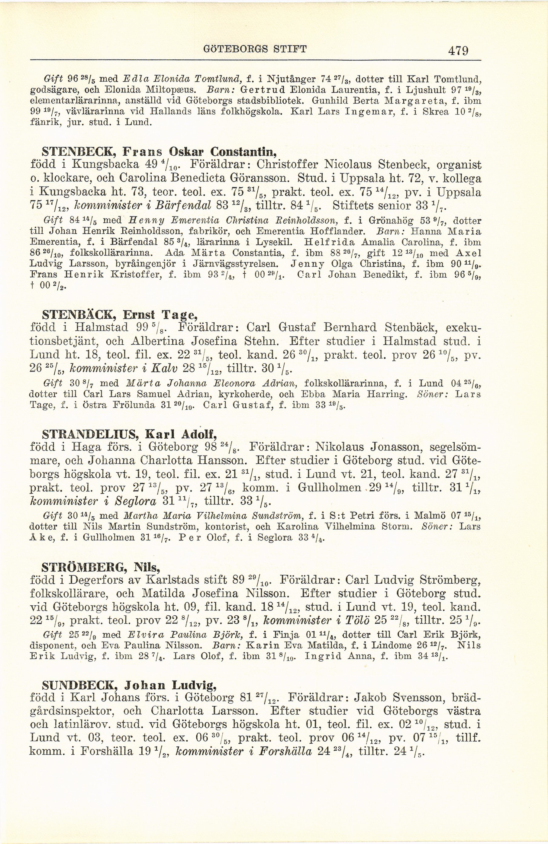 Göteborgs högskola vt. 19, teol. fil. ex. 21 sl/1, stud. i Lund vt. 21, teol. kand. 27 31/1,