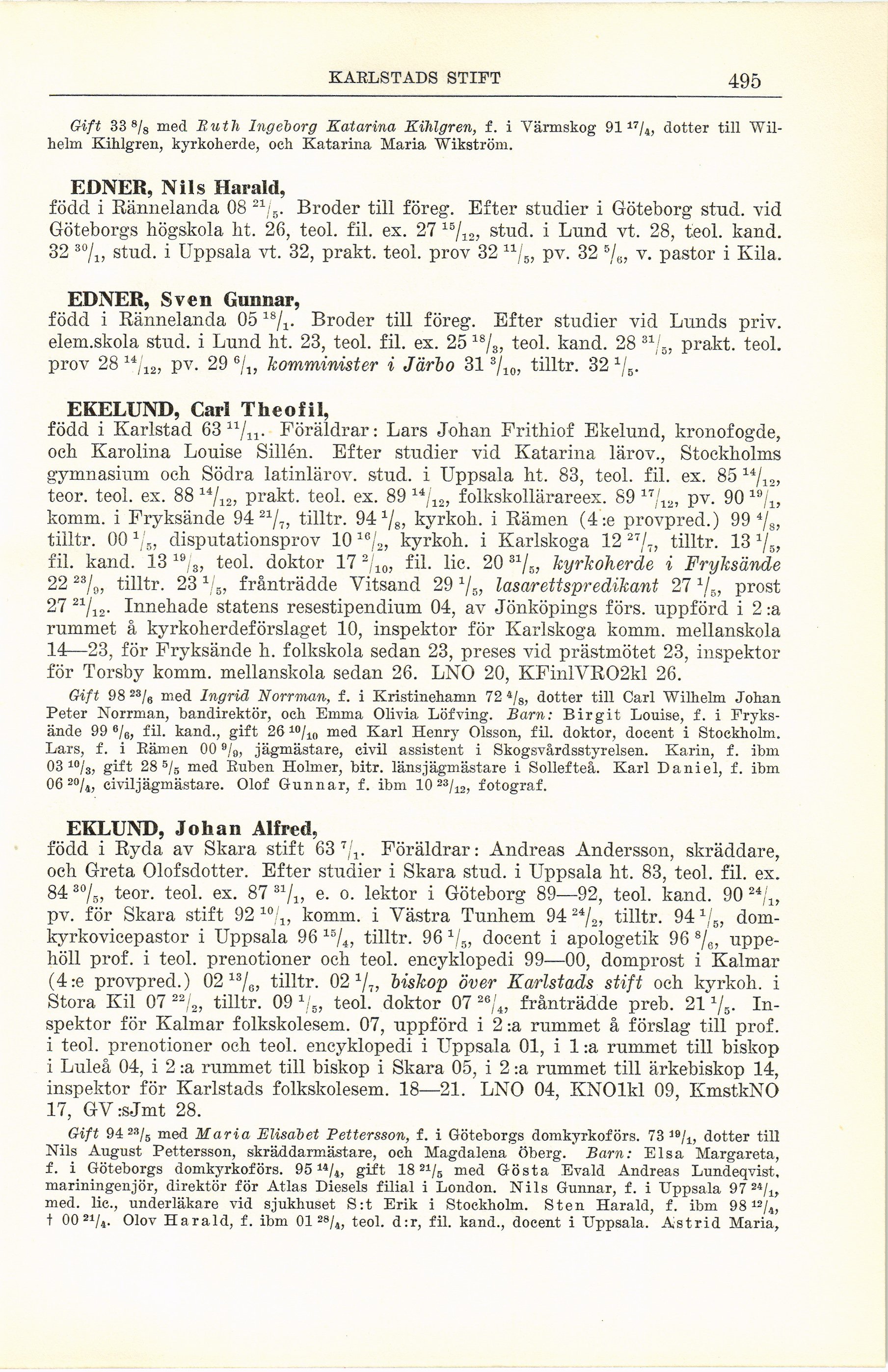 fil. kand. 13 19/3, teol. doktor 17 2/10, fil. lic. 20 31/5, kyrkoherde i Fryksände