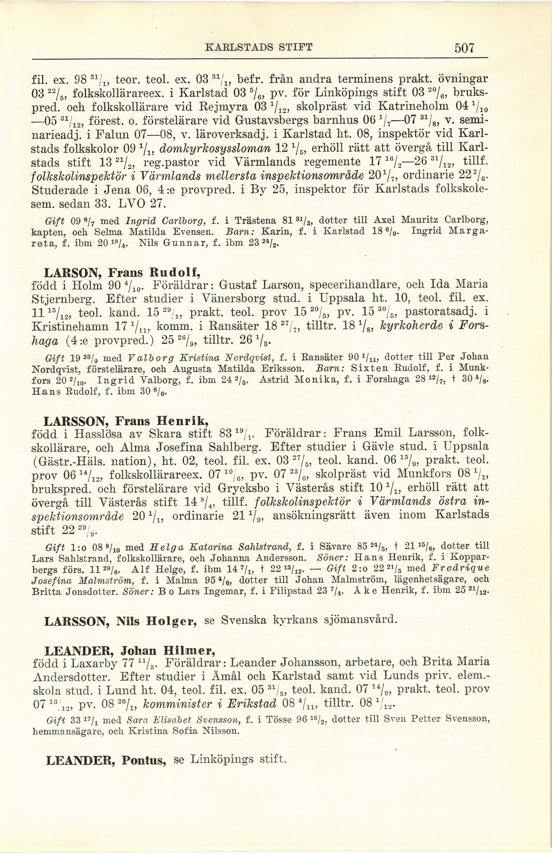 03 22/5, folkskollärareex. i Karlstad 03 5/G, pv. för Linköpings stift 03 20/fi,